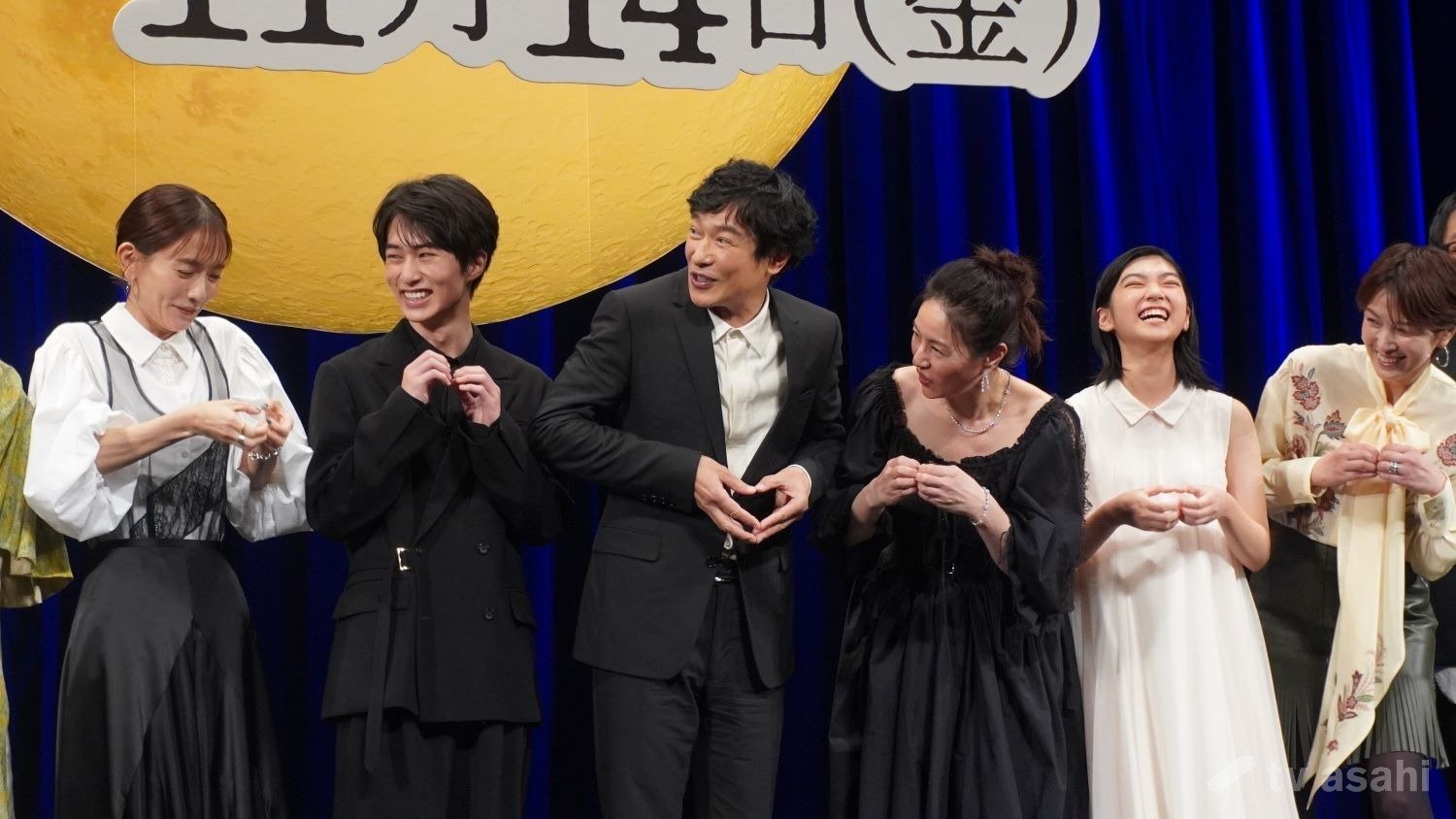 ラブストーリーとあり、フォトセッションではカメラマンからハートポーズのリクエストが。堺雅人、井川遥ら登壇者は楽しそうに思い思いのハートを作っていた。
