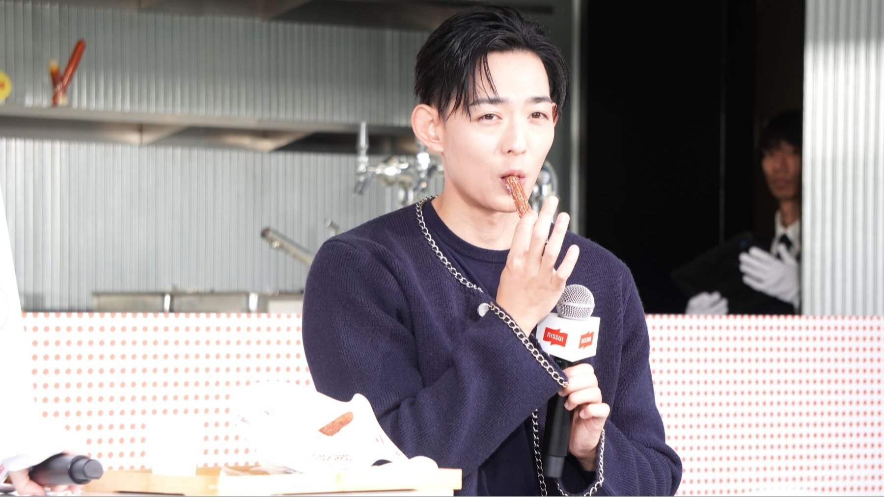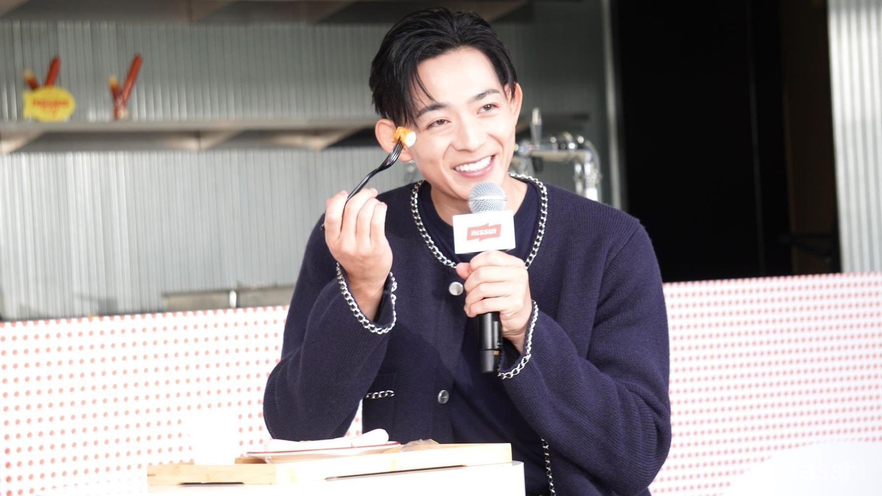 スイーツが大好きという竜星涼は、「おさかなのソーセージ」や「おいしいものをちょっとだけ」(ちくわ)を使った新感覚スイーツ「フィッチュロス」を試食。