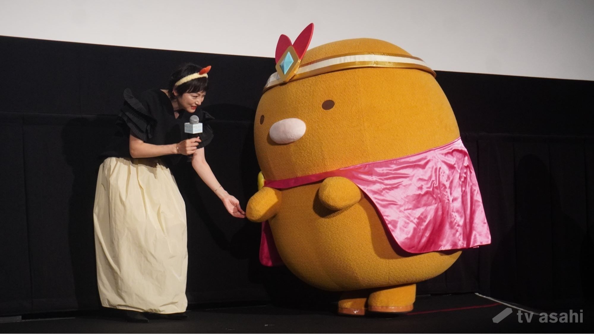 イベント中盤には、すみっコの「とかげ」「とんかつ」「えびふらいのしっぽ」が登場。本上まなみは、とんかつをエスコートした。