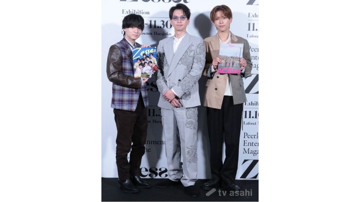“大倉忠義編集長”の仕事ぶりを聞かれた深田竜生と西村拓哉は、大倉を絶賛。具体的なエピソードを聞かれた深田は悩みつつ、「大倉くんとお話しさせていただくのは初めてくらいだった。雑誌のアドバイスより、ACEesを結成して間もなかったので、グループのことを相談にのっていただきました」と明かした。