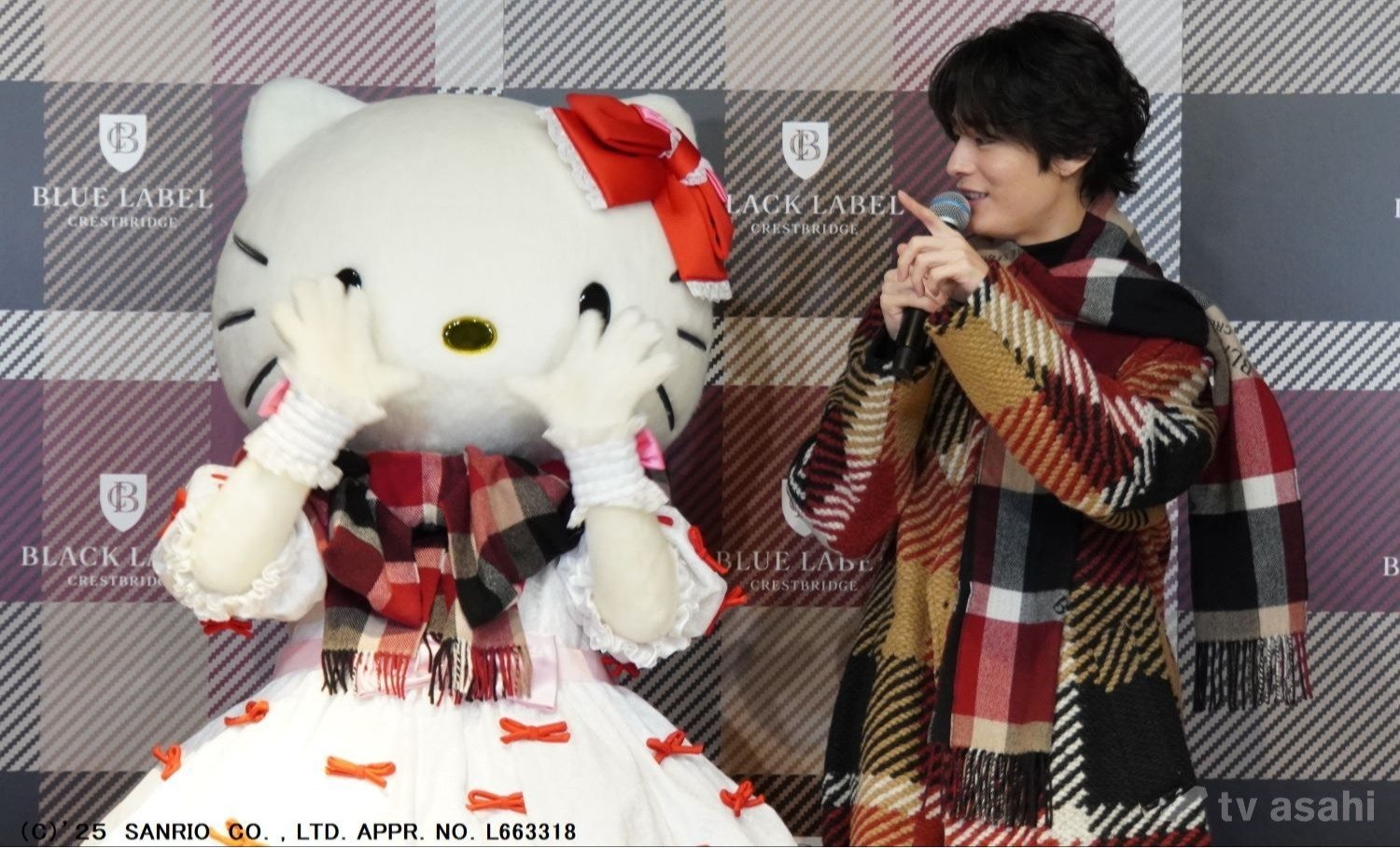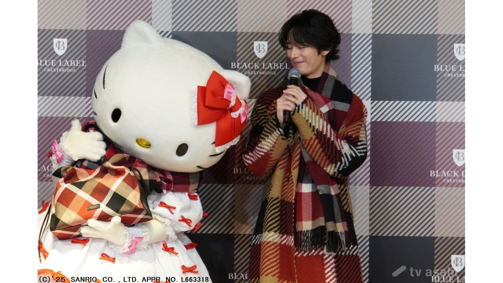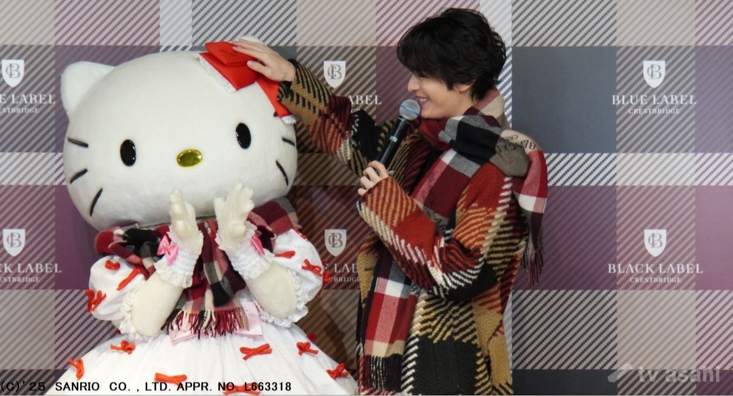 塩野へ“CB CHECK”のダッフルコートを贈ったハローキティは、塩野からバッグのお返しが。「絶対に離さない!」という抱え方(笑)。