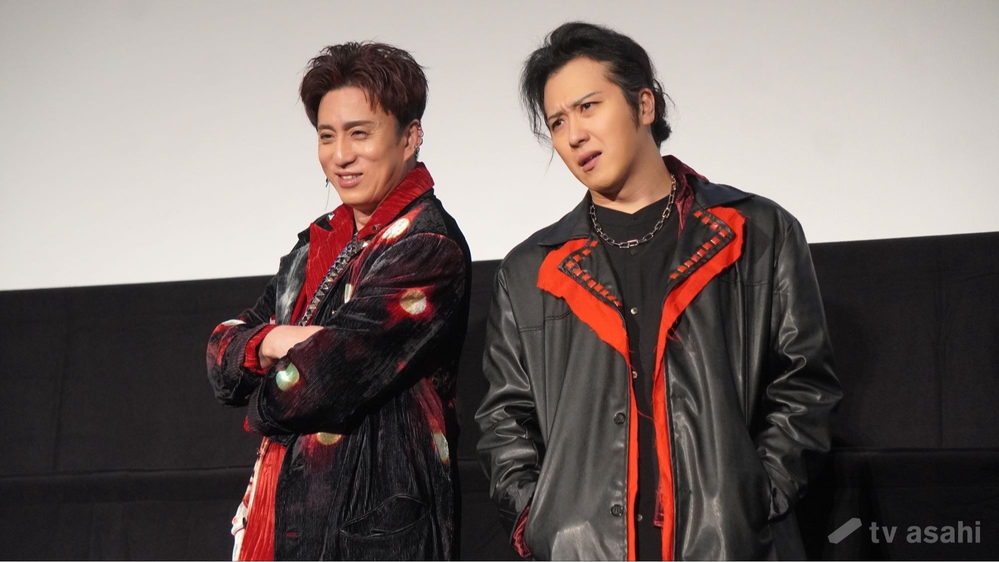 2人は主人公・ライをイメージした“悪い男”風の衣装で登場した。松本幸四郎は「日本の皆様こんにちは、メリークリスマス!」と挨拶した。