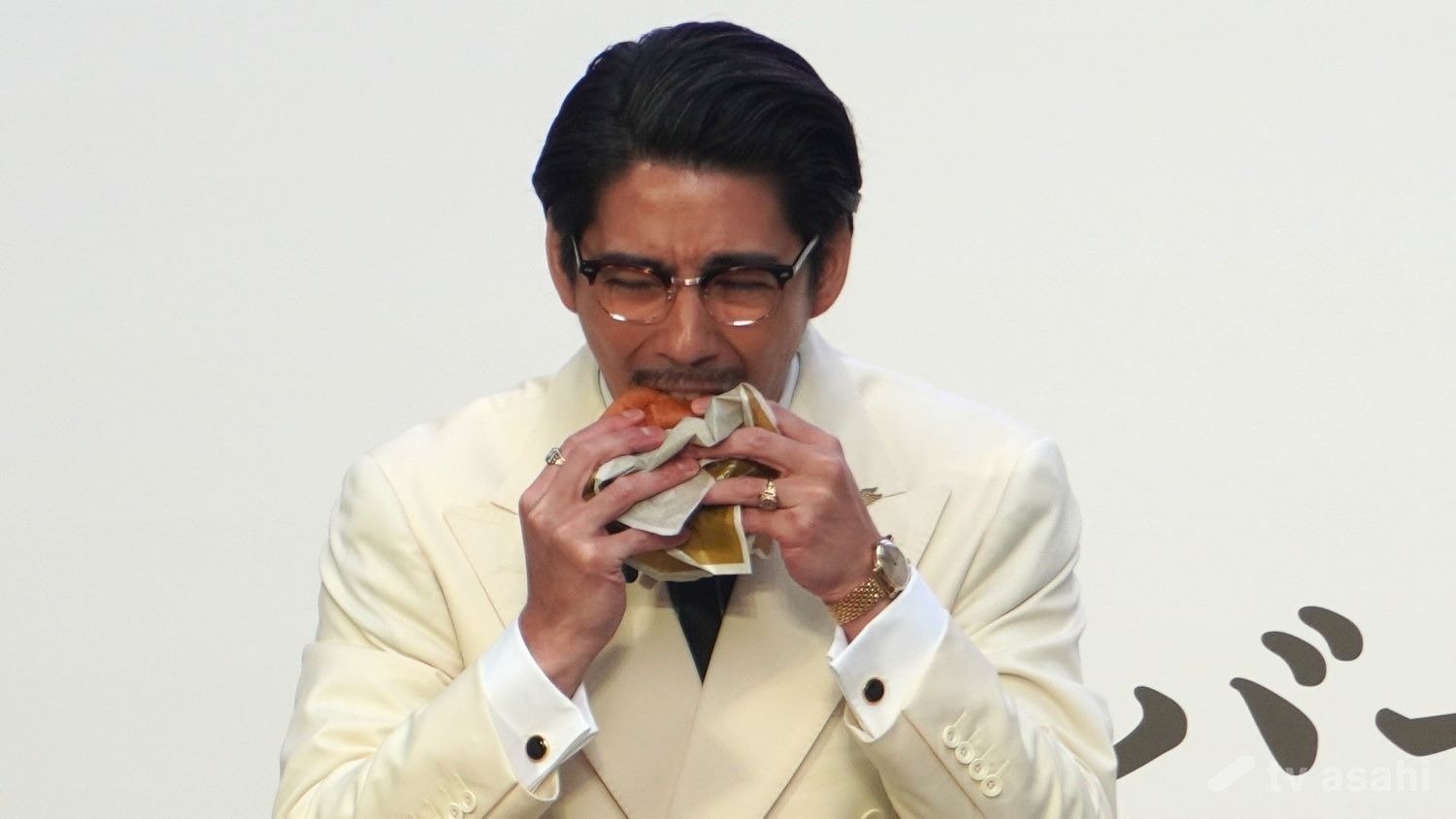 賀来賢人は26日から発売の「ケンタの鶏竜田バーガー」を試食。良い食べっぷり!