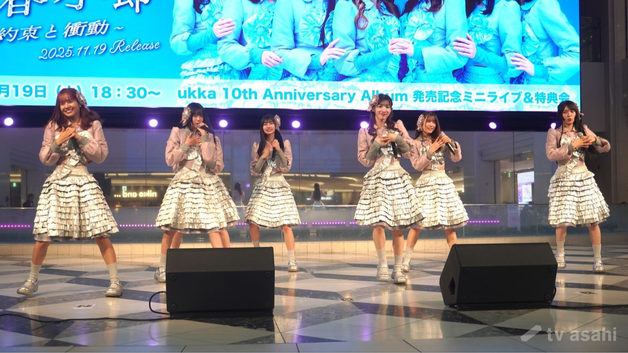 この日は、最新アルバム収録曲の「リボンのひみつ」を披露した。7人の美しい歌声と、キュートなダンスが輝いていた。