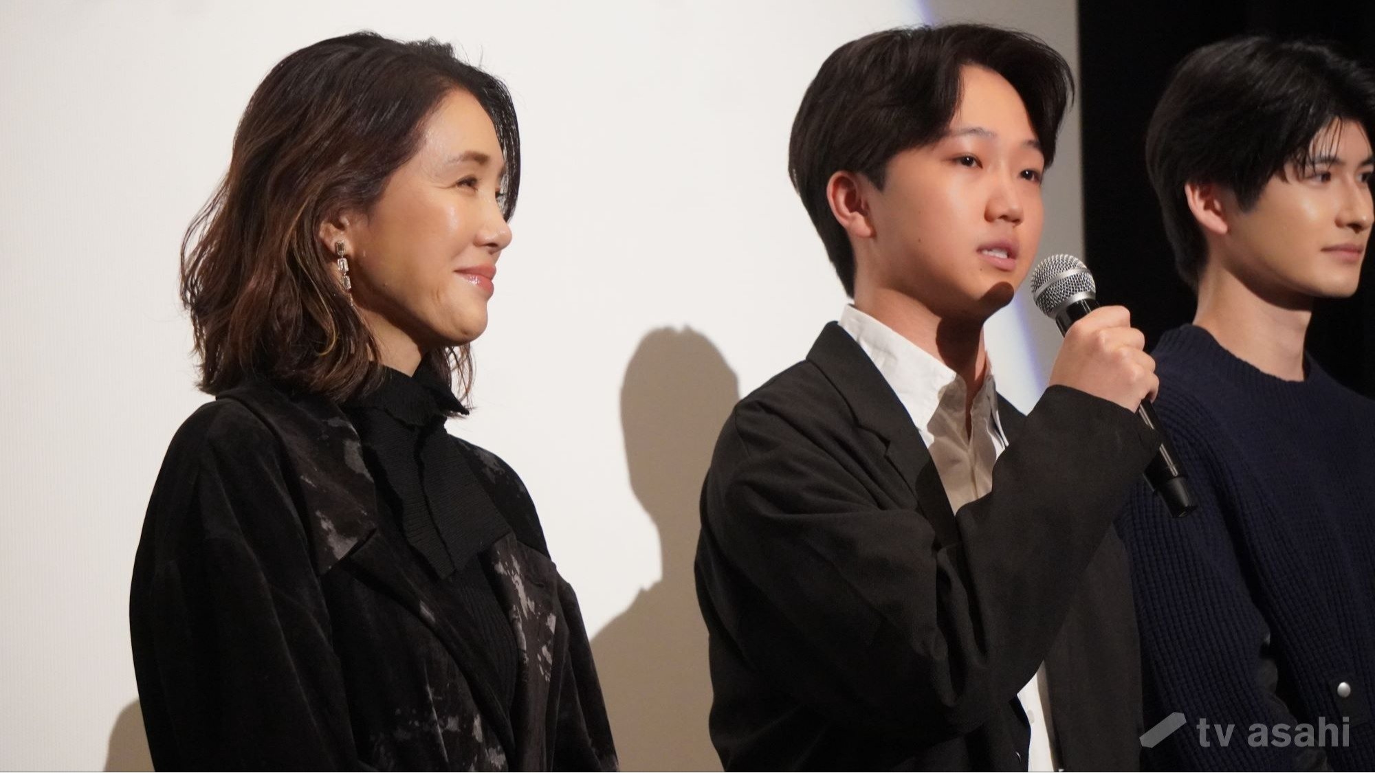 徳永智加来は、「これが自分にとって初めての舞台挨拶なんです。先ほど、監督から『一生に一度しかない初めてを味わって』という言葉をいただいたので、楽しんでいきたいと思います」と緊張ぎみに挨拶した