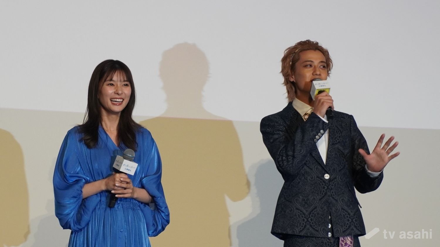 この日の舞台挨拶は映画の上映前に行われた。高橋海人は冒頭の挨拶で「もし映画のネタバレを言っちゃったら止めてください」と周囲に呼び掛けると、芳根京子は「言っちゃたらもう遅い」とツッコんでいた。