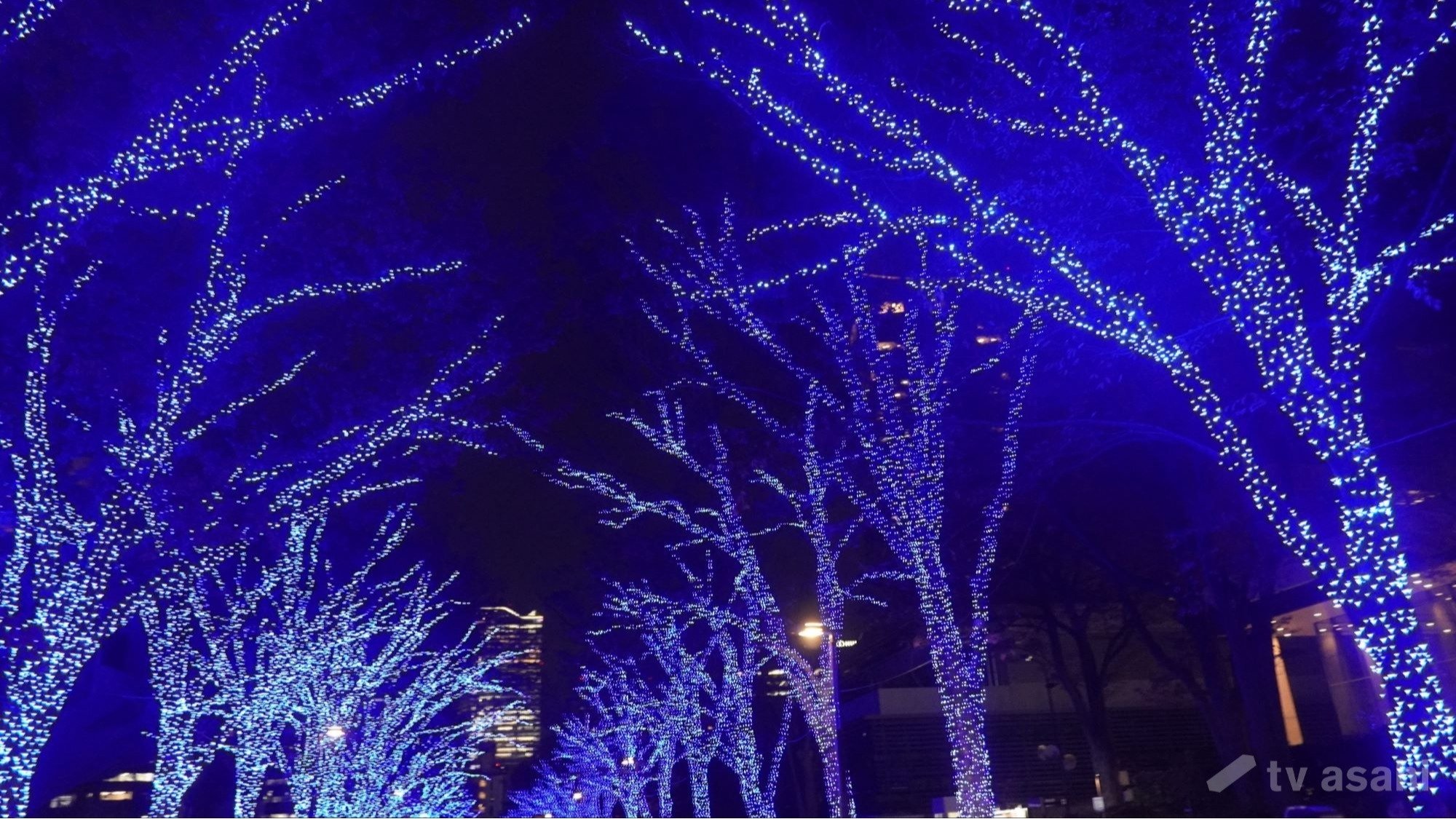 イルミネーションが点灯。幻想的な青の光に包まれた。