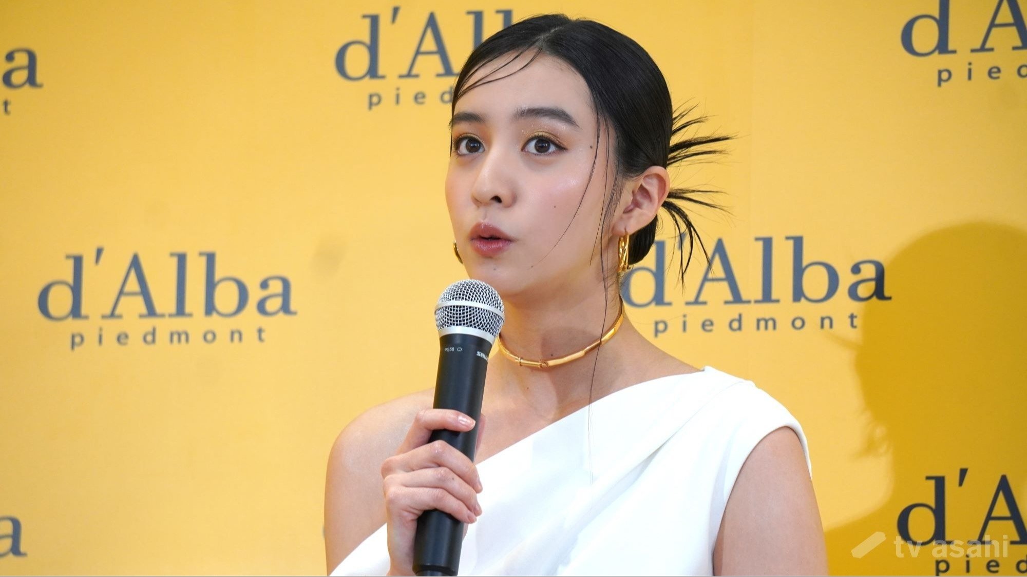 Koki,は、肩がざっくり開いた白のドレスで登場した。