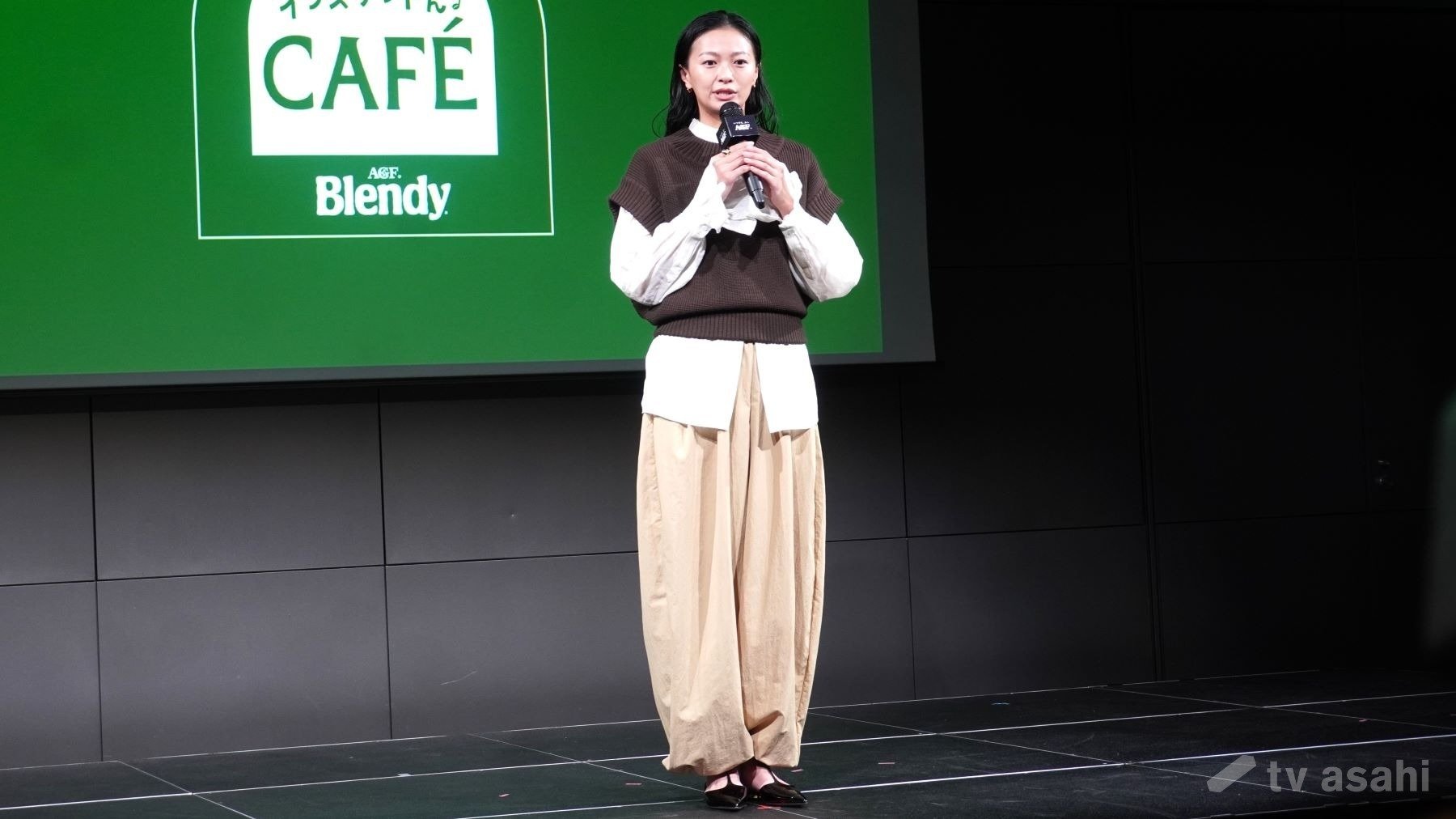 榮倉奈々は、イベントに合わせてカフェオレをイメージした自身のブランド「newnow」の洋服で登壇。「ふんわりした袖とかもミルクの柔らかさが表現できたらと思って。偶然だったんですけどミルクマッチでした」と明かした。