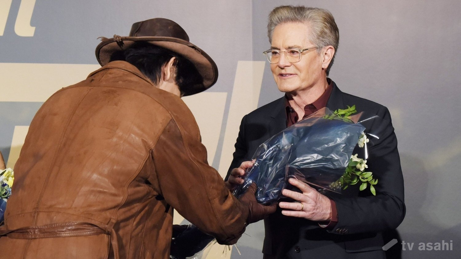 野田クリスタルから花束を受け取ったマクラクラン。今回の来日で楽しみにしていることを問われると、「東京は一度来ると、また何度も戻って来たくなる場所だと思う。日本に何度か来てますので、大好きなレストランもお店もあります。とにかく日本のやり方が全て、本当に正確だし、すごく心がこもっているところが大好きなんです。前回行った『チームラボ』は、今回のリストに絶対のっています」と明かした