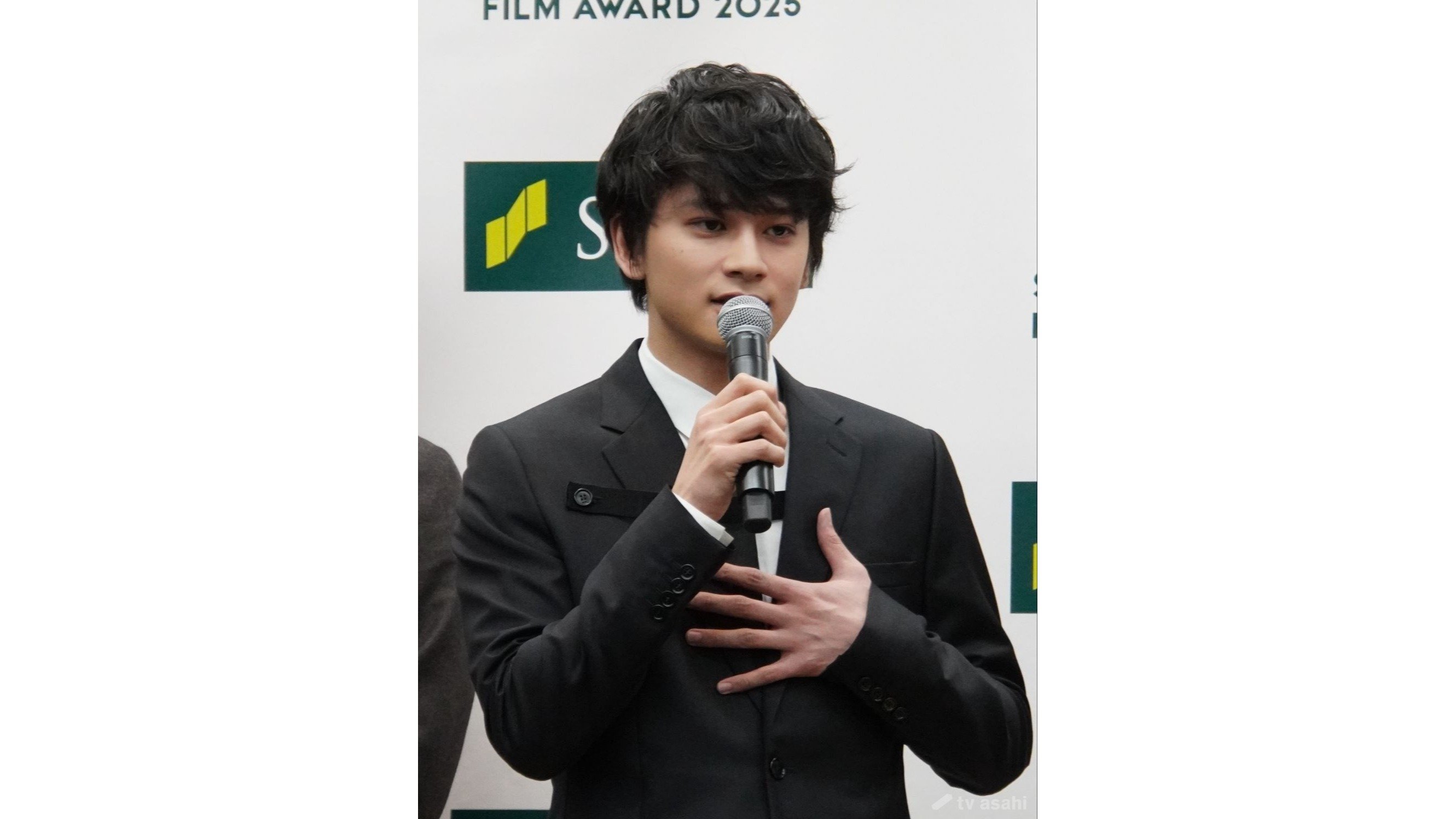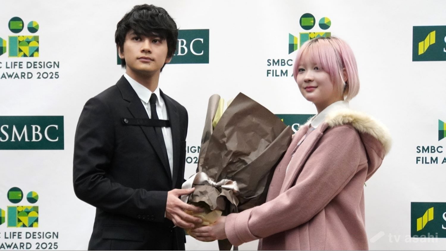 プレゼンターとして花束を手渡した北村。手が触れそうで触れない絶妙な距離。