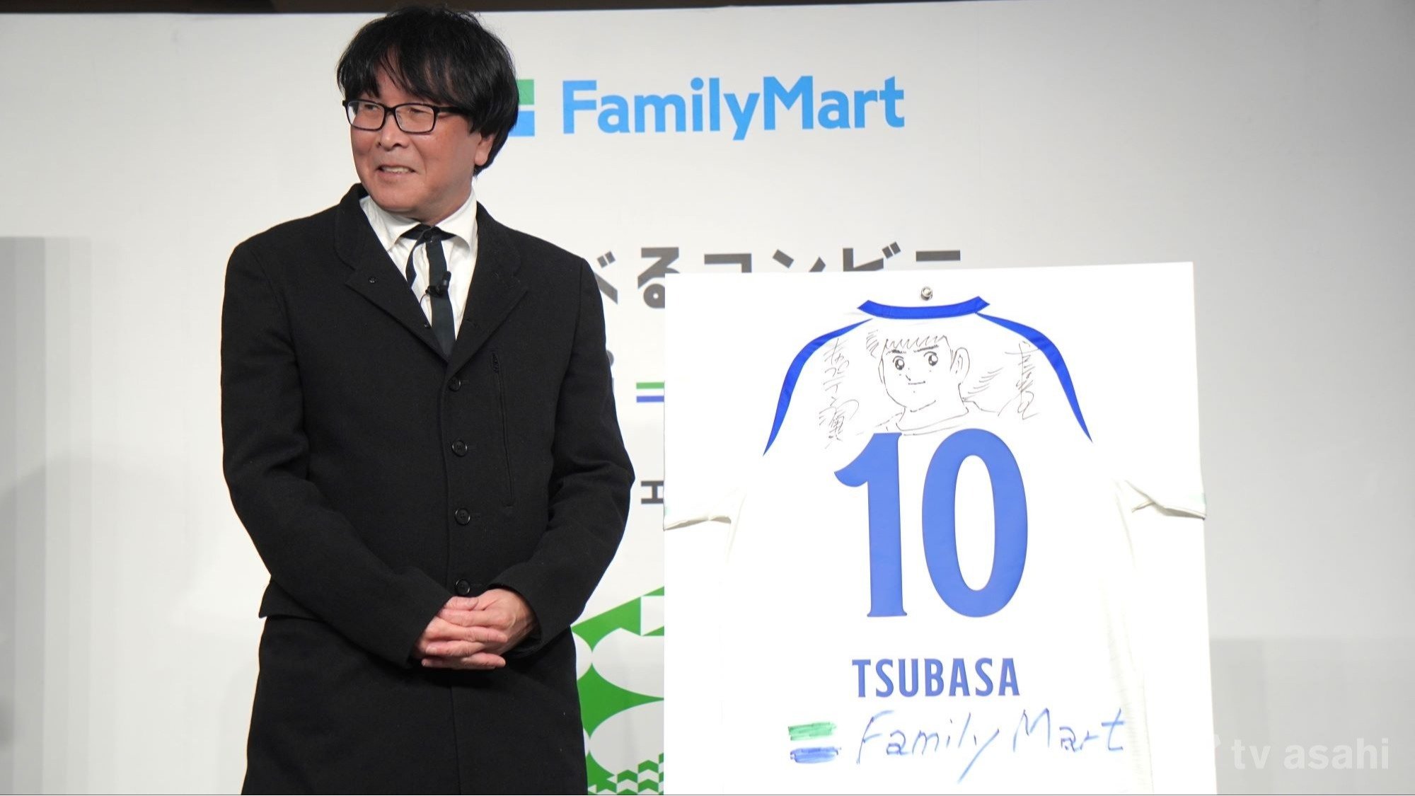 この日は、「キャプテン翼」の原作者で、プロサッカークラブ「南葛SC」のオーナー兼代表取締役社長を務める高橋陽一氏が登場した。南葛SCのホームタウンである東京・葛飾区の「ファミリーマート葛飾たつみ橋店」が南葛SCラッピング店舗に変身したことについて、「南葛SCのサポーターの皆さんが訪ねてくれて、すごく反響があります」とうれしそうに明かした。