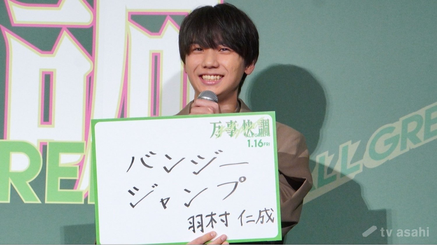羽村は「『万事快調』なのでバンジージャンプ」と笑顔で掲げ、「人生で一度もないのでやってみたい。待ってます!お願いします!」と呼びかけた。