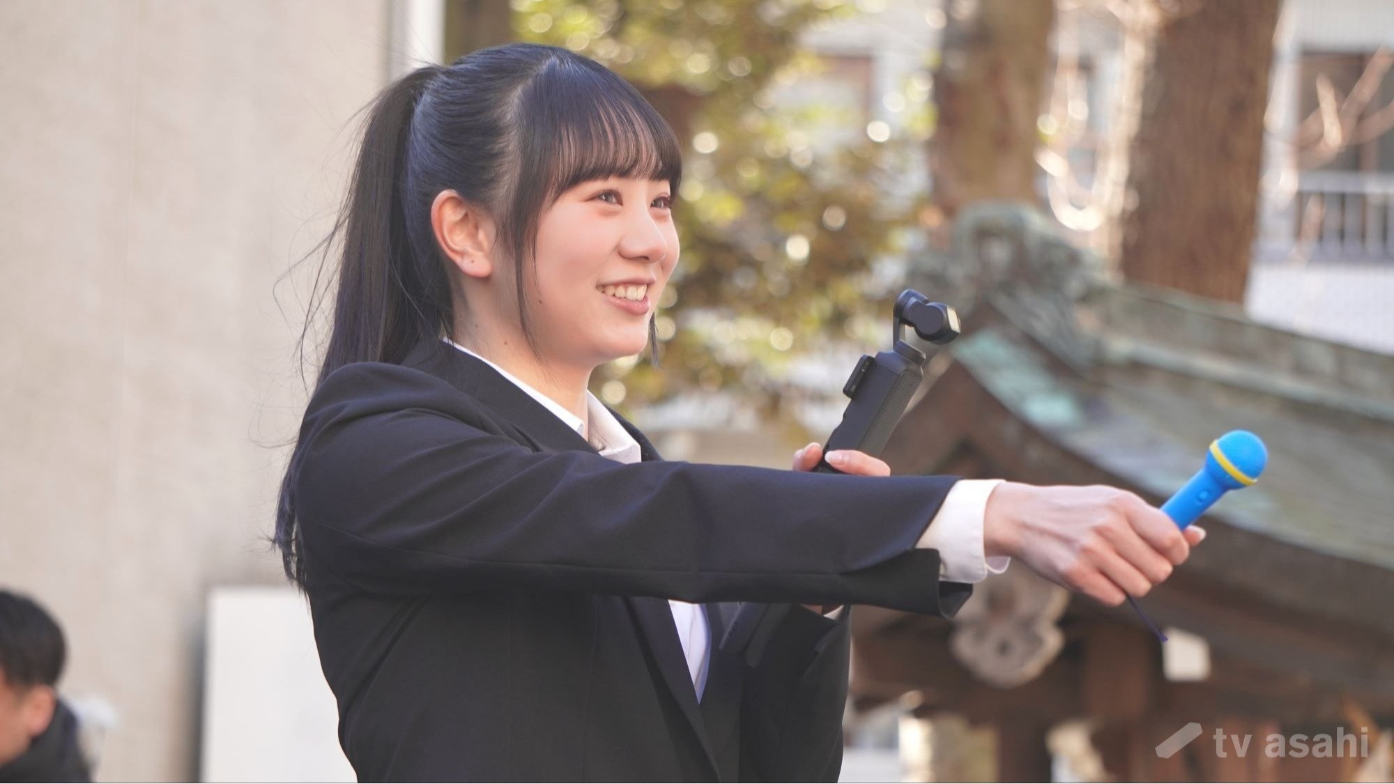 囲み取材には、リーダーで、うま年生まれの年女・塩釜菜那もリポーターとして参加した。