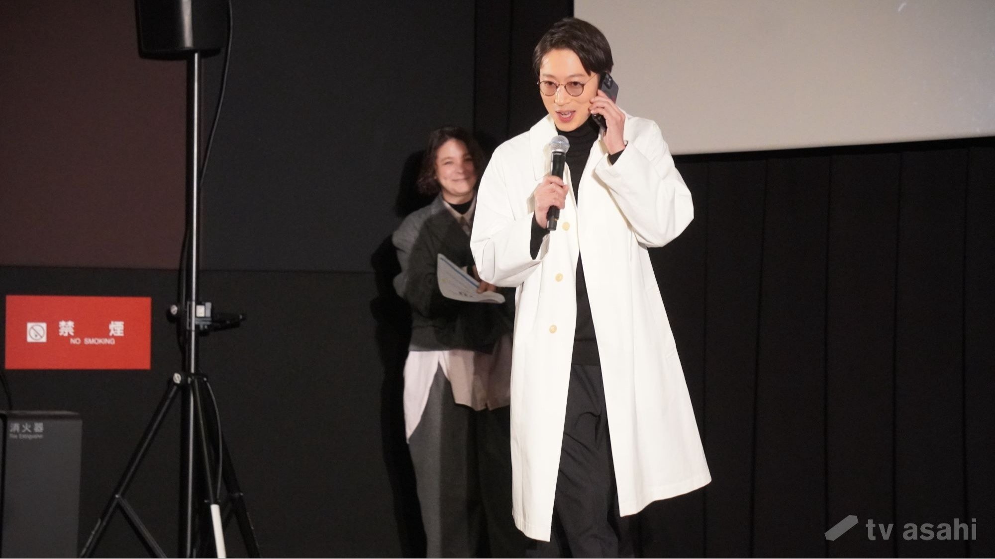 電話をしながら、はんにゃ.の金田哲がサプライズで登場した。金田は今作で、闇バイトの黒幕・エンジェル役を演じ、シークレットキャストとして名前が伏せられていたが、本イベントをもって情報解禁となった。
