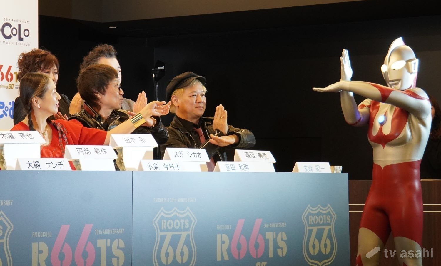 フォトセッション時、ウルトラマン直伝の“シュワッチポーズ”のレクチャーを受ける面々。