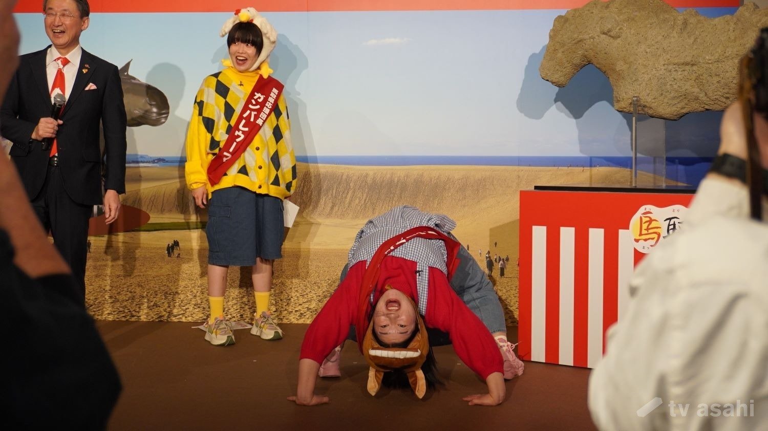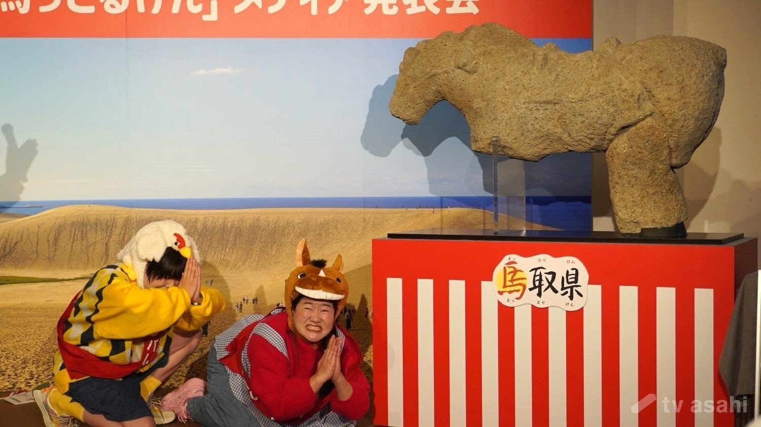 会場には、「石馬大明神」として鳥取・天神垣神社に収蔵されている「石馬」のレプリカが登場。腰痛にご利益があるといわれており、よしこが「腰痛が治りますように」と願うと…