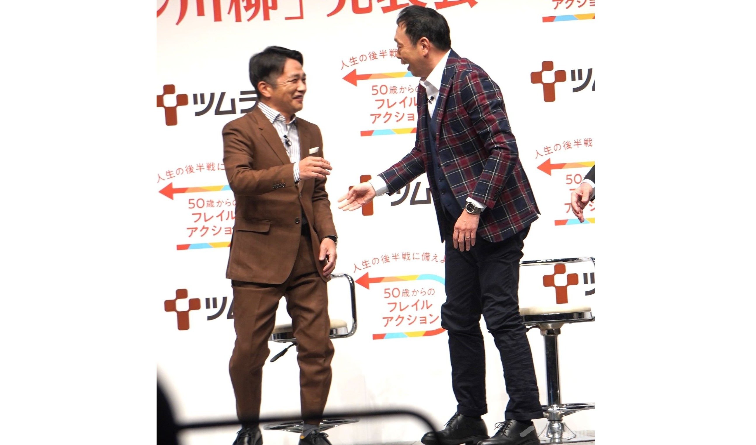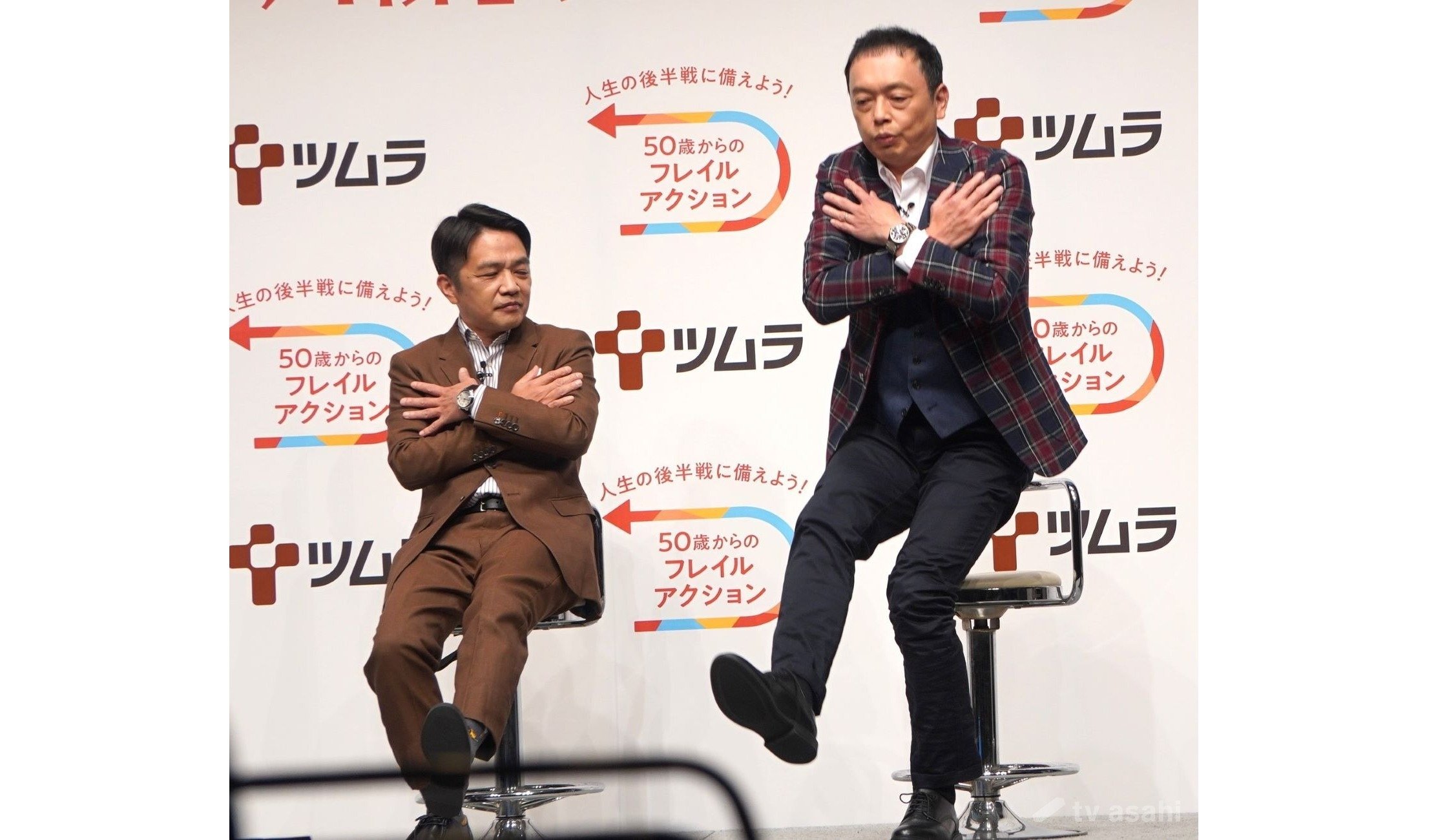 続いて剛の番になると、剛は両足で普通に立ち上がるというボケを披露。すかさず礼二がツッコみ、笑わせた。