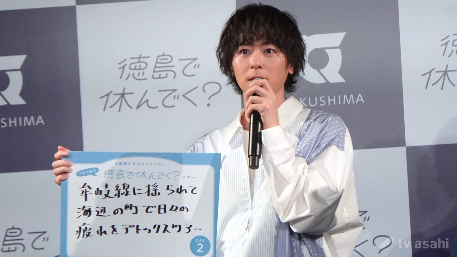 犬飼貴丈は徳島県を、「徳島県は全国的に、まだまだ知られていない魅力がたくさんあふれている県だと思っています。ぜひ、徳島で自分と向き合い、ゆっくりとした時間を過ごしていただければなと思います」とアピールした