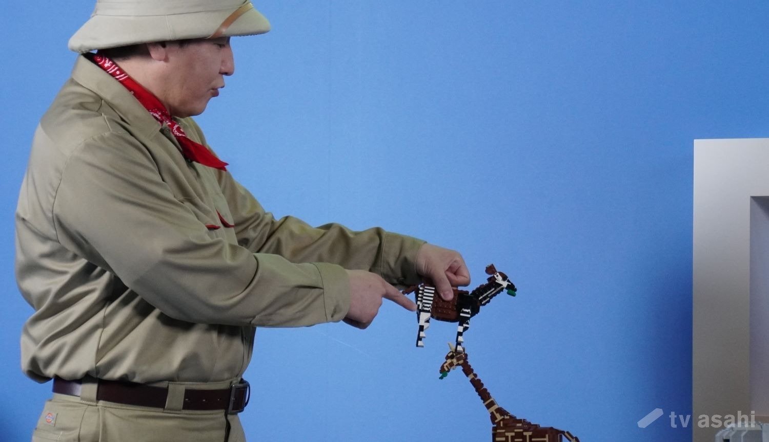長田庄平が手にしているもの、お分かりいただけるだろうか。ズーラシア名物のオカピ!再現度がすごい!