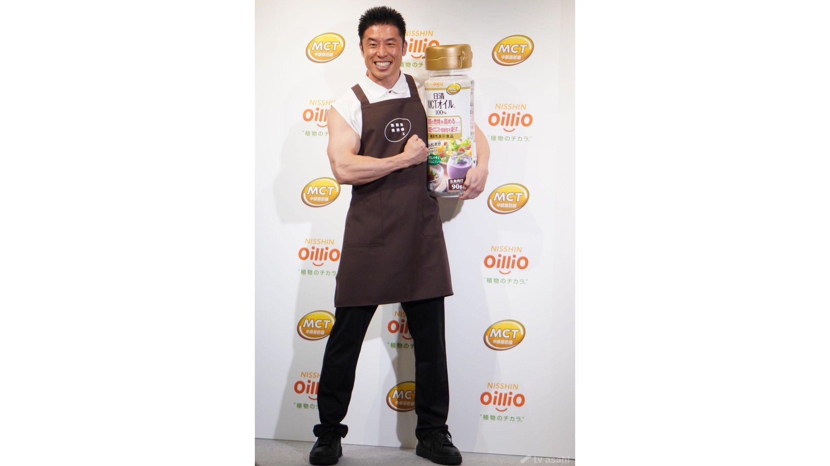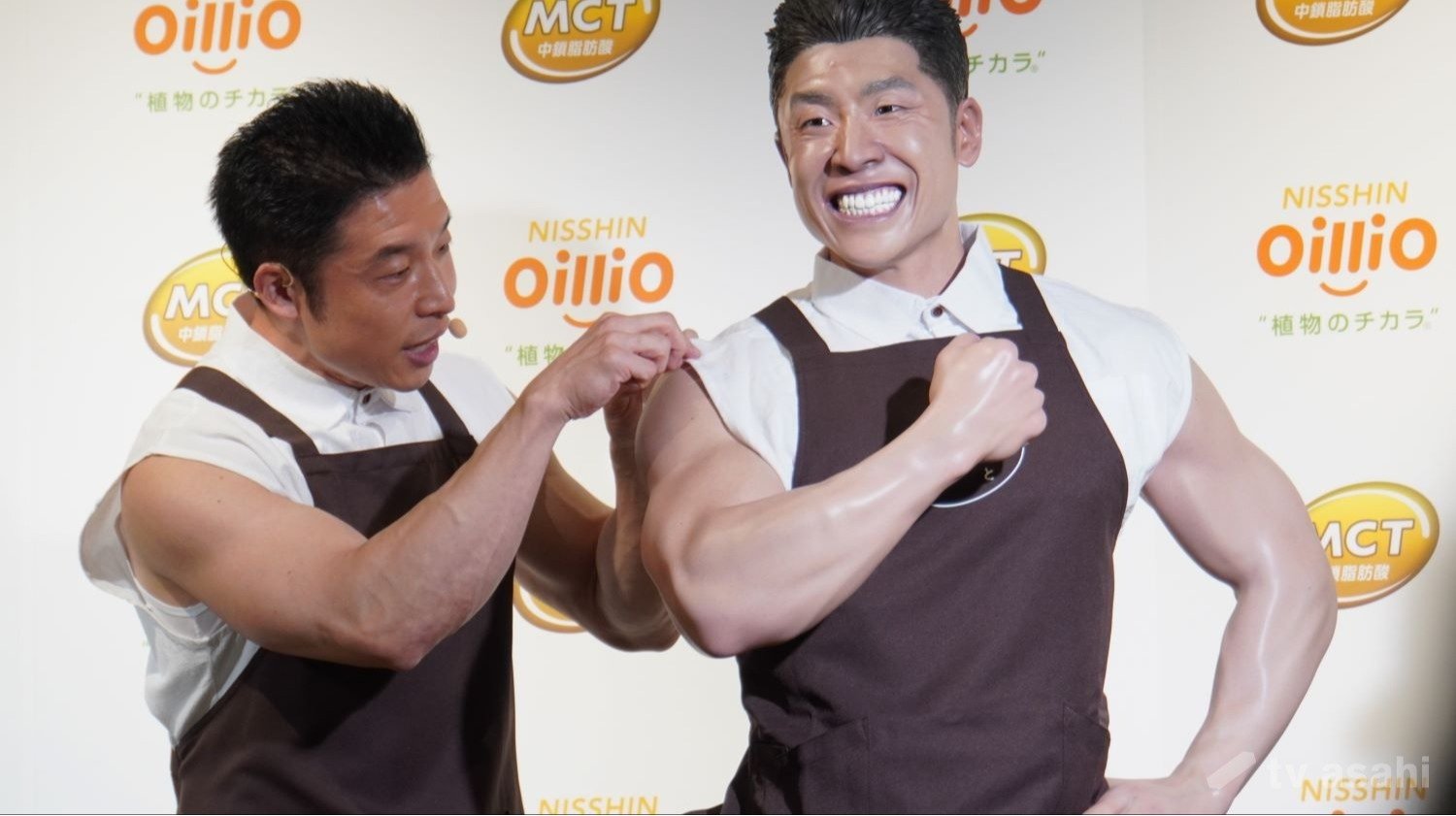 店長代理のきんに君オブジェも、同じタンクトップを着ていると聞き、「ちょっと見ちゃおうかな」と確認。愛用タンクトップだったようです。
