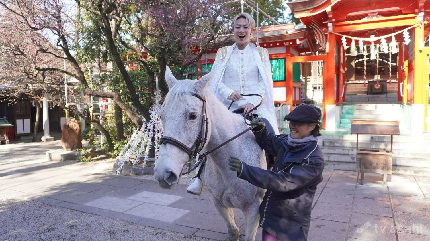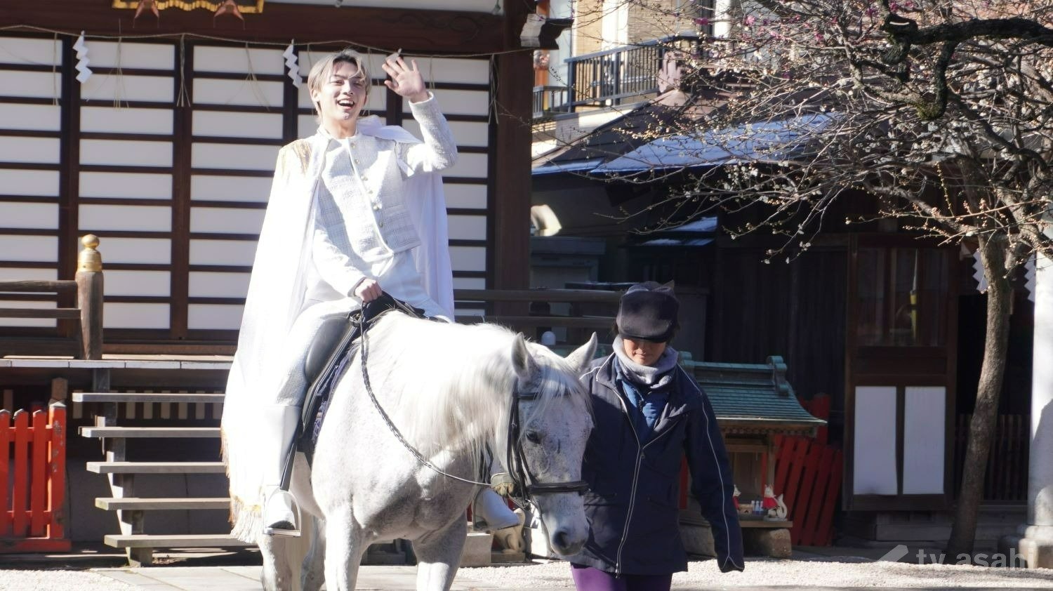 “演歌界の王子様”との愛称で呼ばれる辰巳ゆうとは、王子様ファッションで白馬に乗ってさっそうと登場。まさに“白馬の王子様”そのものだった。