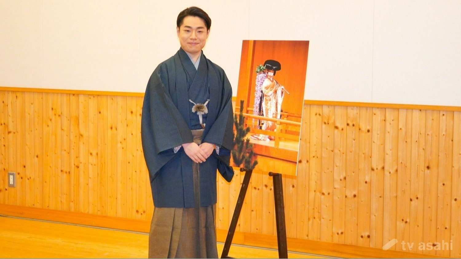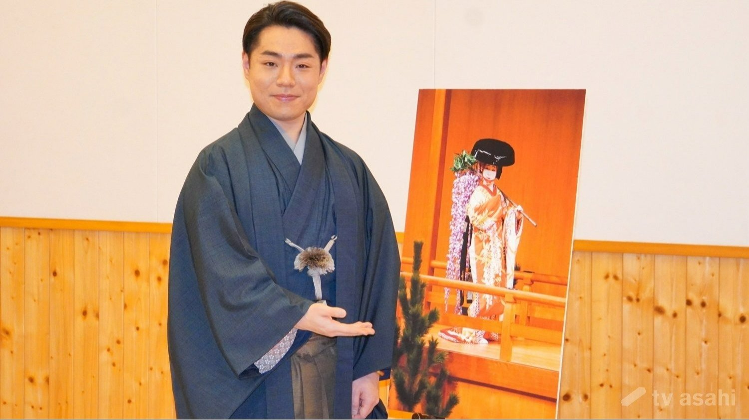自身が演じた過去の「藤娘」の写真パネルと並び、「これは14、15歳くらい。久しぶりに見て、まだこの頃はかわいらしかったな」と笑った。