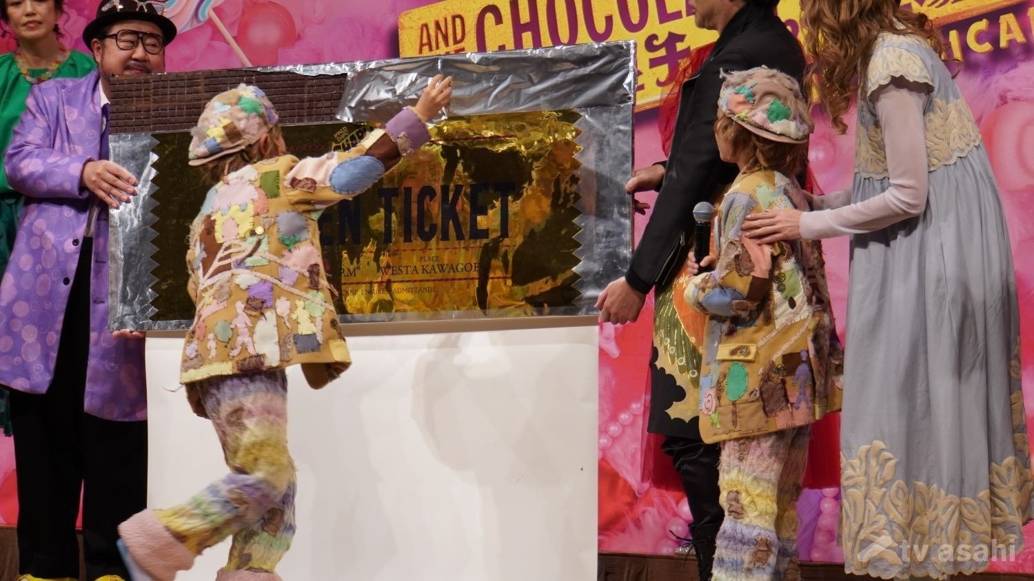 チャーリー役の子役3人から、堂本へサプライズで巨大チョコレートのプレゼント。「本命チョコです!」と言われ、「参っちゃうなぁ。何をお返ししよう」とうれしそうだった。