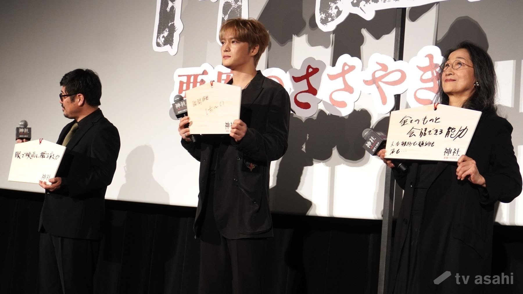 “欲しい特殊能力”を聞かれた熊切和嘉監督は「目で映画を撮る能力」、JAEJOONGは「瞬間移動した〜い」、木野花は「全てのものと会話できる能力」と発表。