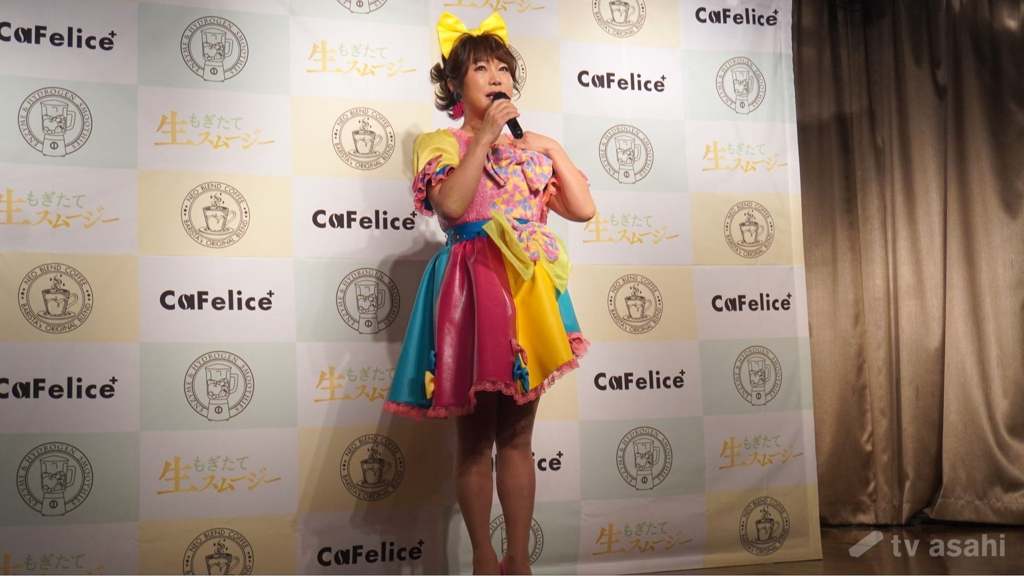 キュートな衣装で登場したはるな愛は、「アイドルの衣装、テンション上がっちゃって、やっぱり気持ちいいです」と笑顔を見せた。