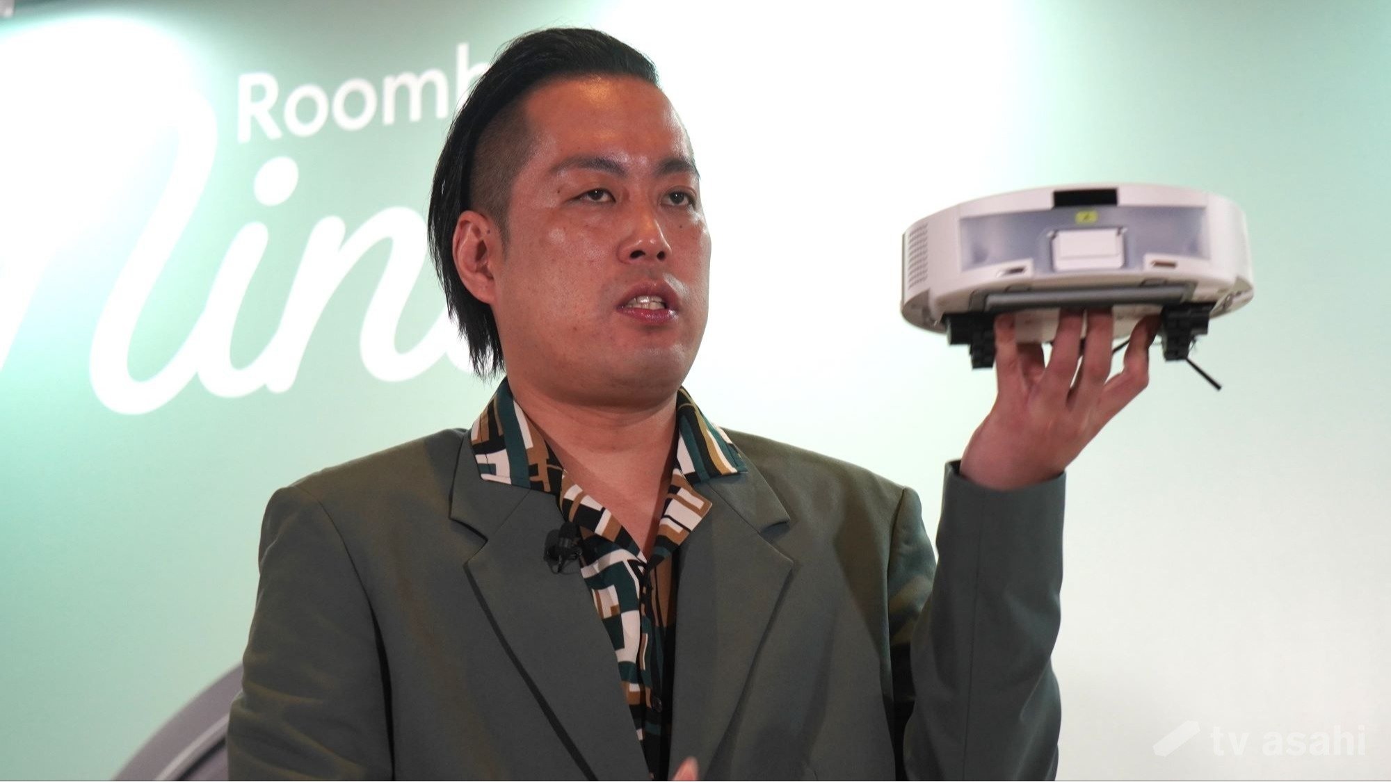 今回発売される新製品は、世界最小クラスのロボット掃除機で、町田和樹が「軽い!」と片手で持つ場面も。