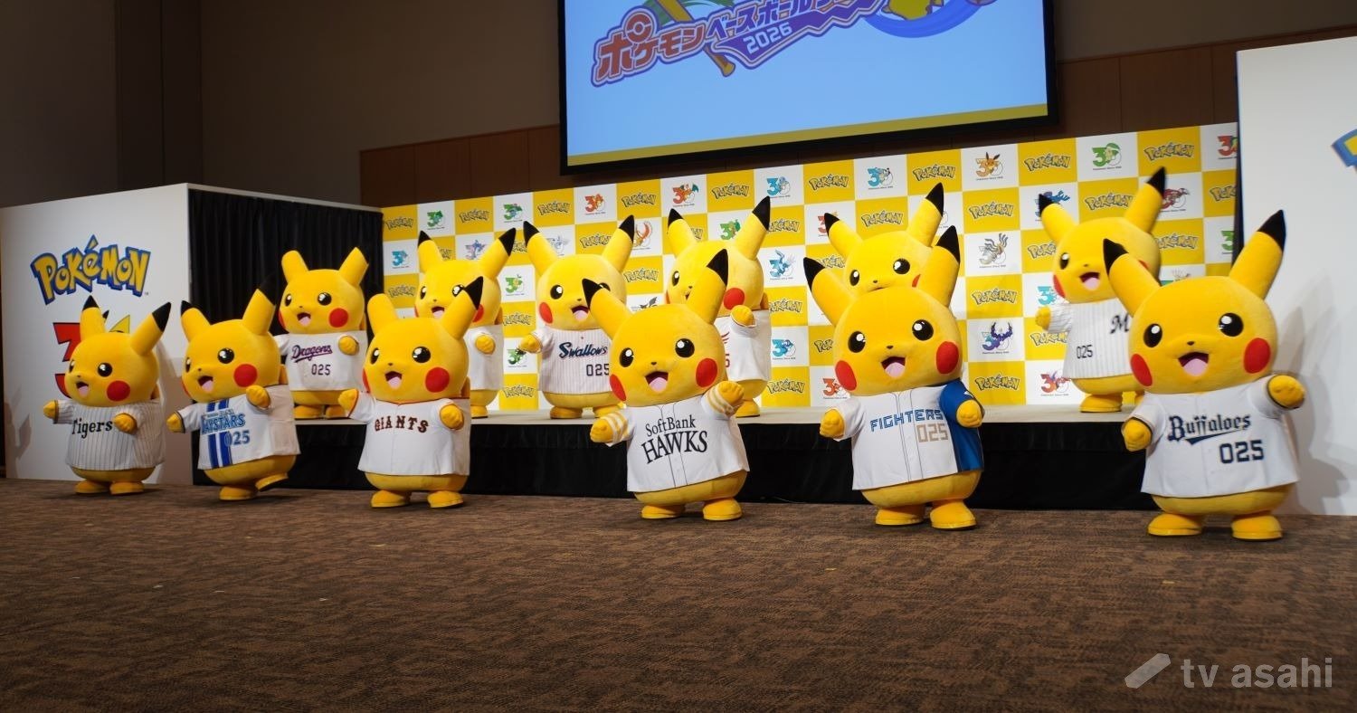 プロ野球12球団のユニホームを着たピカチュウ12人が勢ぞろい!