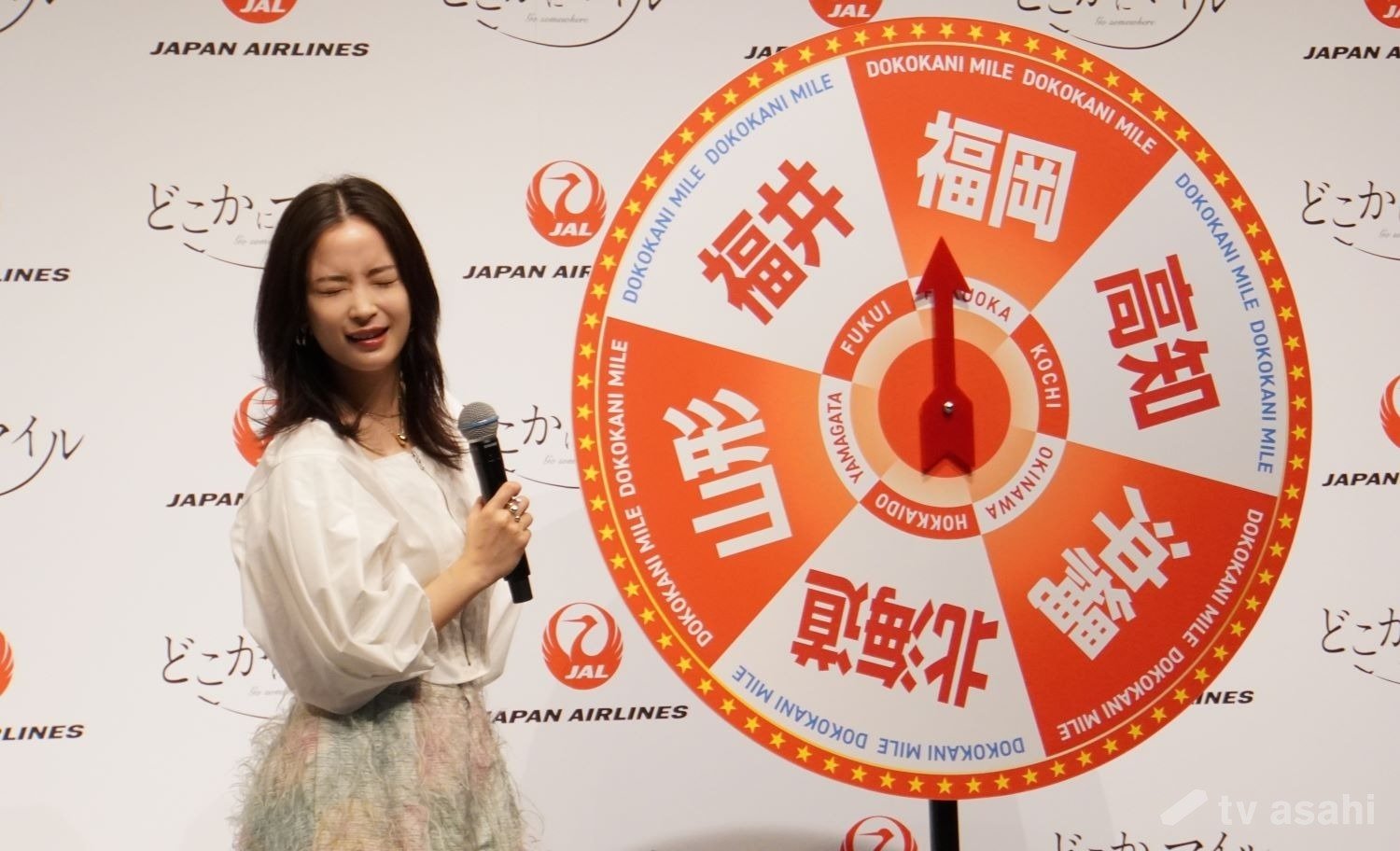 広瀬が気になっている旅行地についてのトークでは、旅先をルーレットで決めるシステム。最初に当たったのは「福岡」で一通りトークし終えて、2周目も「福岡」に矢が止まり、「あちゃ〜」というこの表情