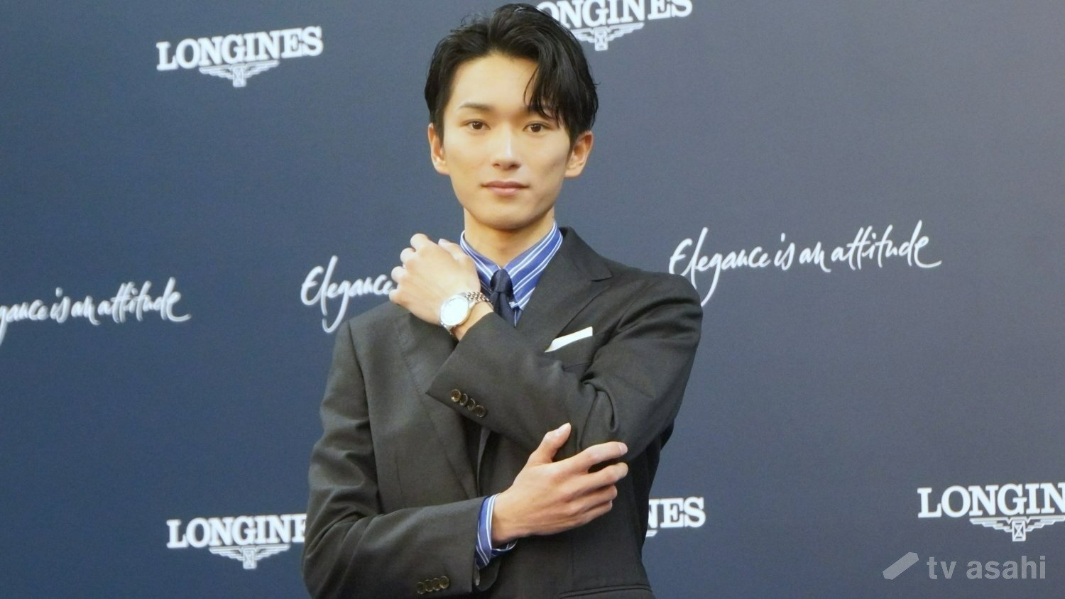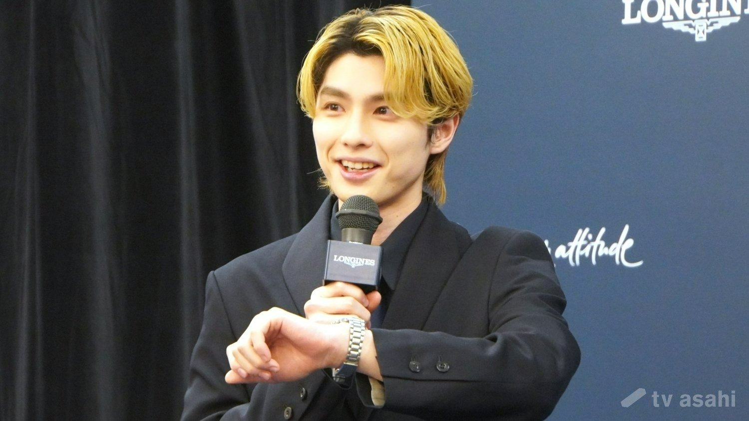 山下美月は、58粒のダイヤモンドが輝く、86万2400円のジュエリーウォッチ・ロンジンプリマルナを着用して登場。「プリマルナという、フランス語で“小さい月”という意味が私自身の名前とも関連があって、すごくうれしいなと思います。ダイヤがたくさんついていて、夜空のようなキラメキがあるのと、ちょっと深めのブルーが、かっこよくも、女性らしい繊細なデザインになっていて、衣装とも合っていて大人の女性になった気持ちです」と喜んだ。