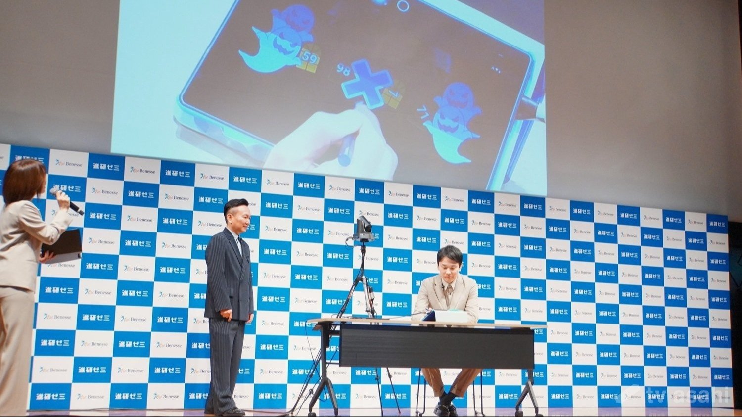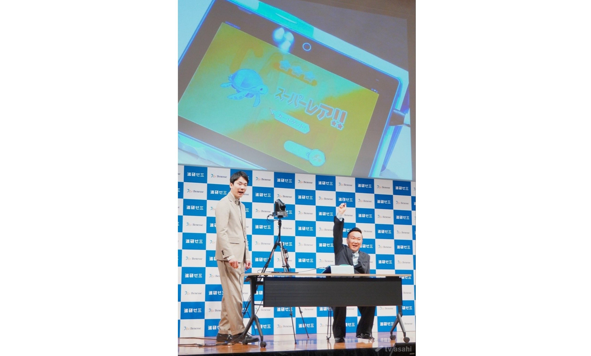ガチャも実装され、山内はスーパーレアを引き当てガッツポーズ。大人の二人がキャッキャしながら楽しんだ。