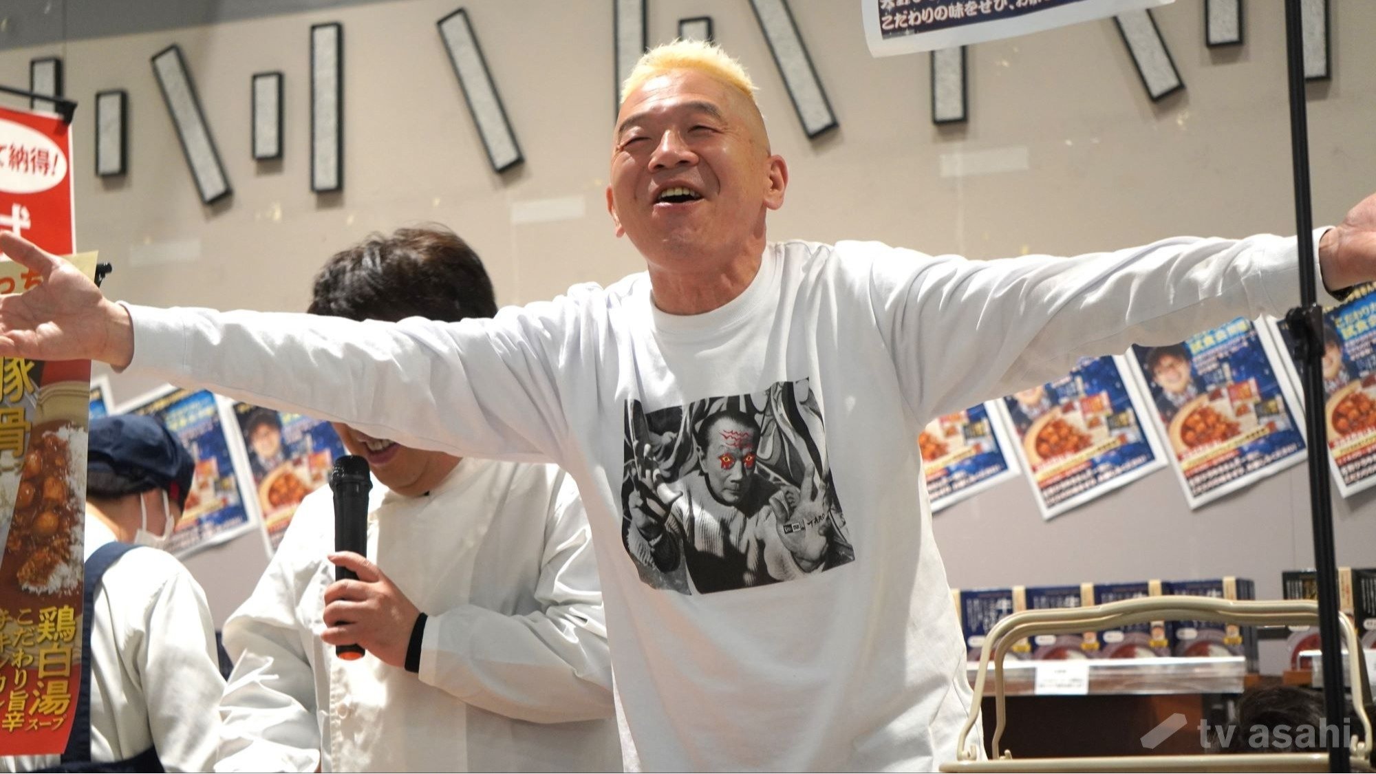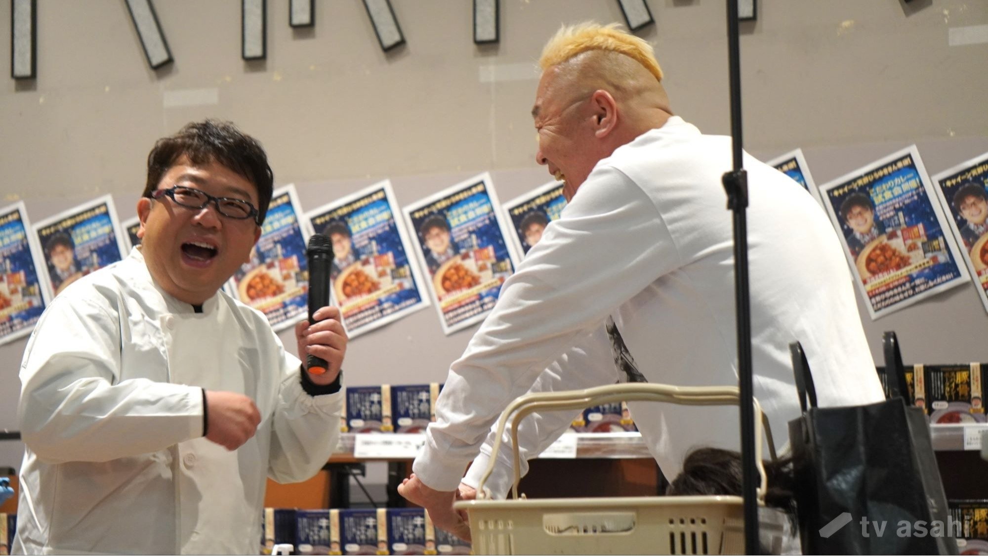 一般客に扮しての登場で、かつらを二重にかぶっており、その理由は、「カレーを3種類試食するため、かつら2種類と、地毛の3種類の自分で試食するため」だという