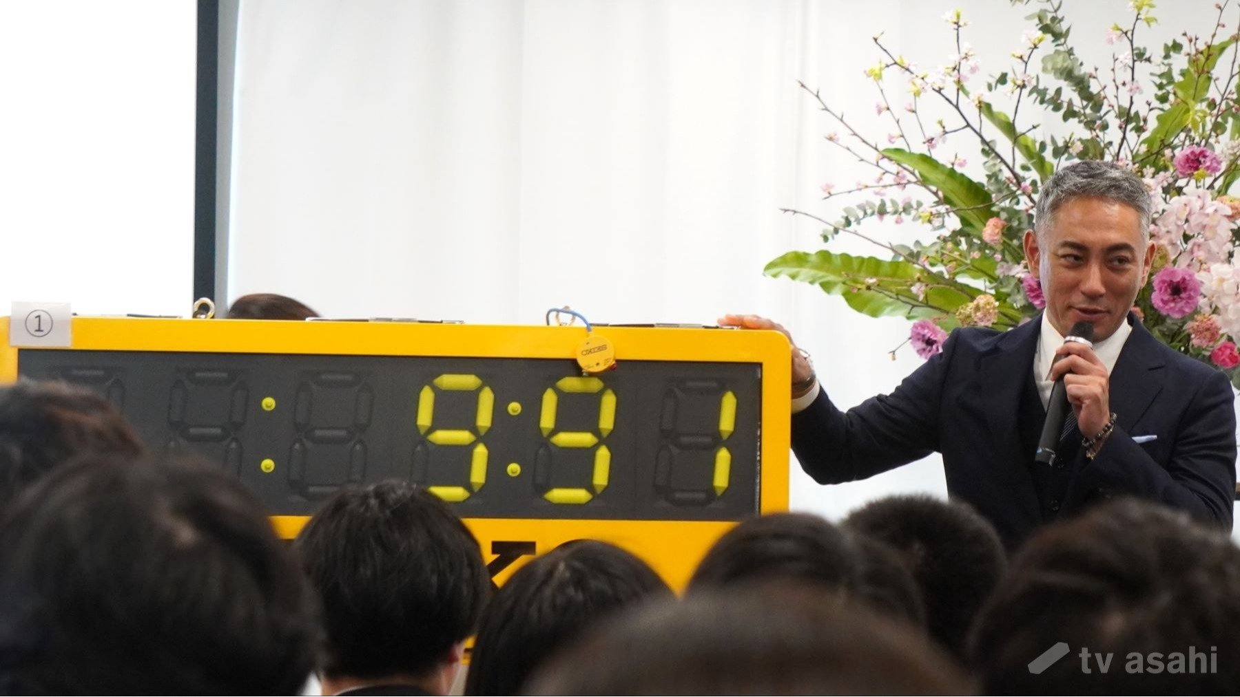 入社式ではTeamSeiko所属の山縣亮太選手の日本記録「9.95秒」へ挑戦する「セイコー9.95チャレンジ」に團十郎も挑戦。見事、タイマーを0.04秒差で止める好記録をたたき出し、会場は感嘆の声が響いていた。
