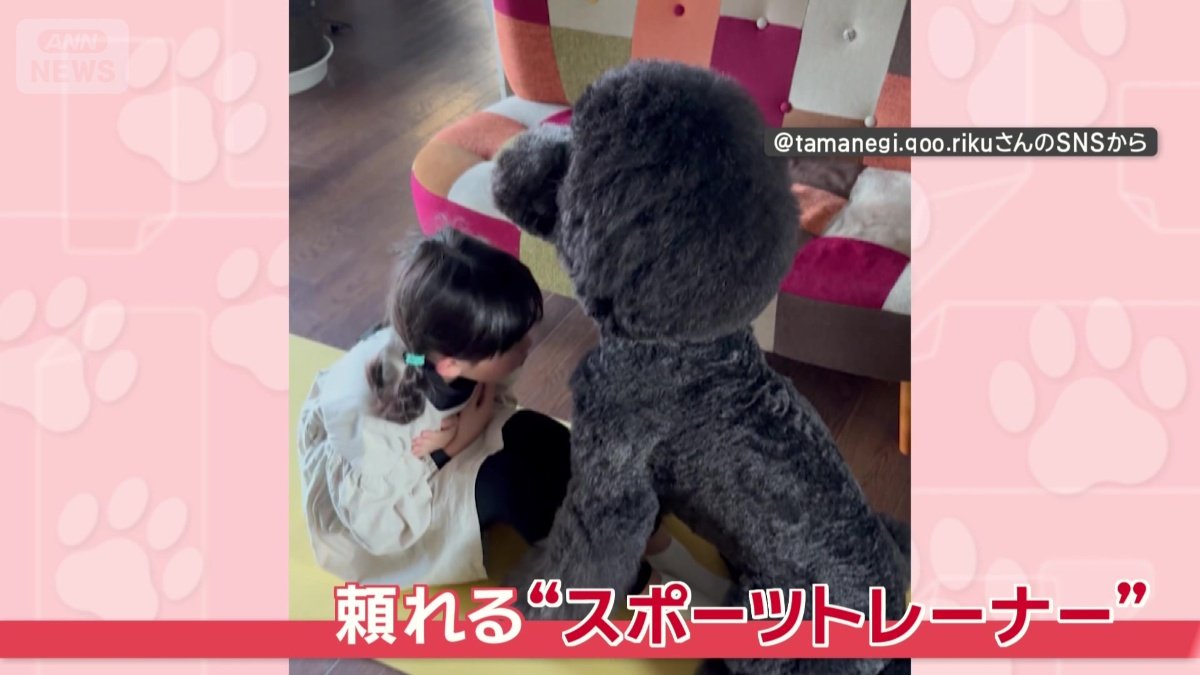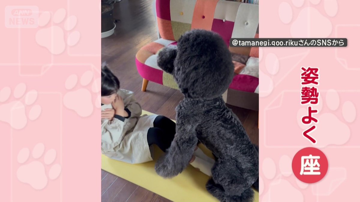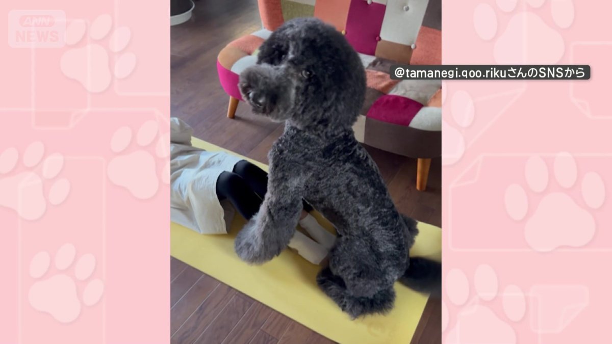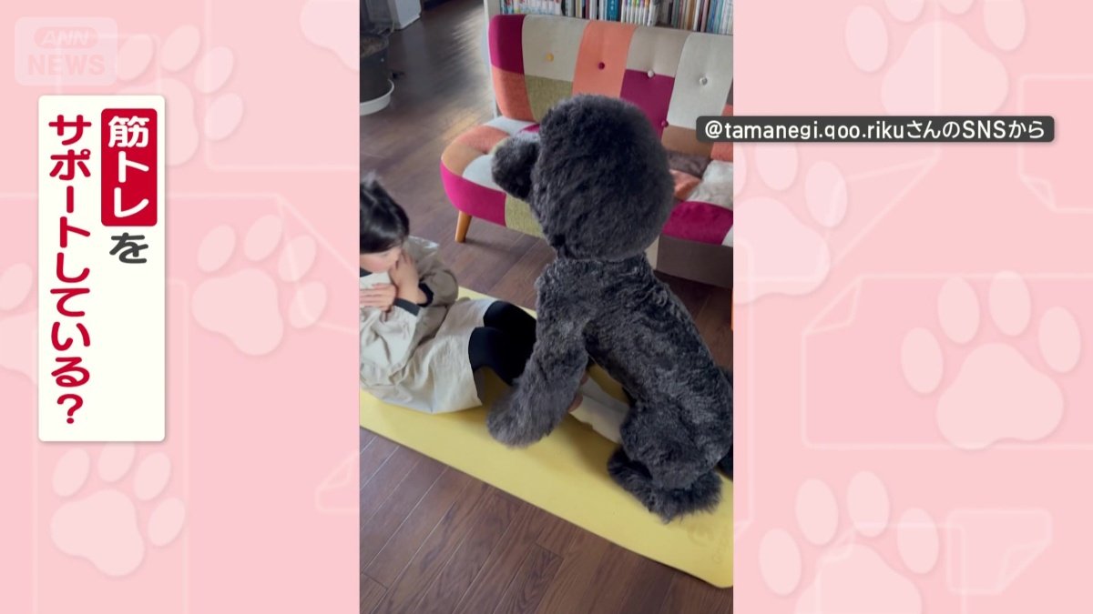「頑張れワン」名トレーナー犬! しっぽフリフリで応援も 筋トレをサポートしてる?