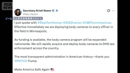 米連邦捜査官にボディ-カメラ配備 ICEらによる市民射殺で批判高まる