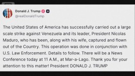「ベネズエラへの大規模攻撃に成功 マドゥロ大統領を拘束し国外に移送」米トランプ氏