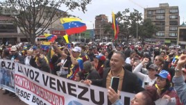 ベネズエラ人が歓喜の集会 避難民多数の隣国コロンビア