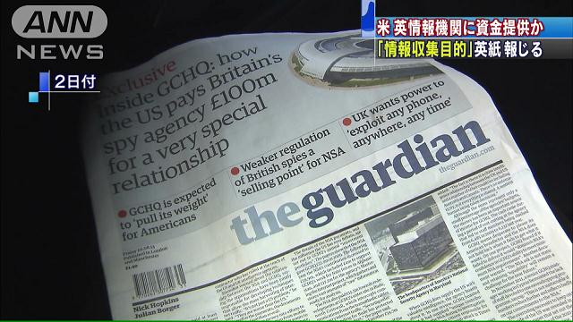 イギリスの高級紙「ガーディアン」は、アメリカがイギリスの情報機関に秘密裏に資金提供をしていたと報じました。