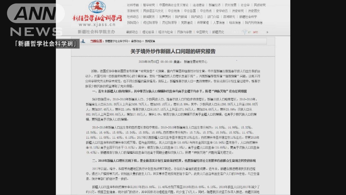 報告書は今年6月にドイツ人研究者が発表したもので、聞き取り調査などをもとに新疆ウイグル自治区でウイグル族などの少数民族の女性に対して不妊手術や避妊具の装着が強要されている疑いを指摘しています。これに対して政府系の研究機関・中国社会科学院の関連部門は、不妊手術や避妊具の装着については事実上認めつつも、「人々は自主的に安全で有効な措置を取っている」と反論しました。さらに、国際的にも認められた措置だと主張し、国内の他の地域でも行われているとしています。