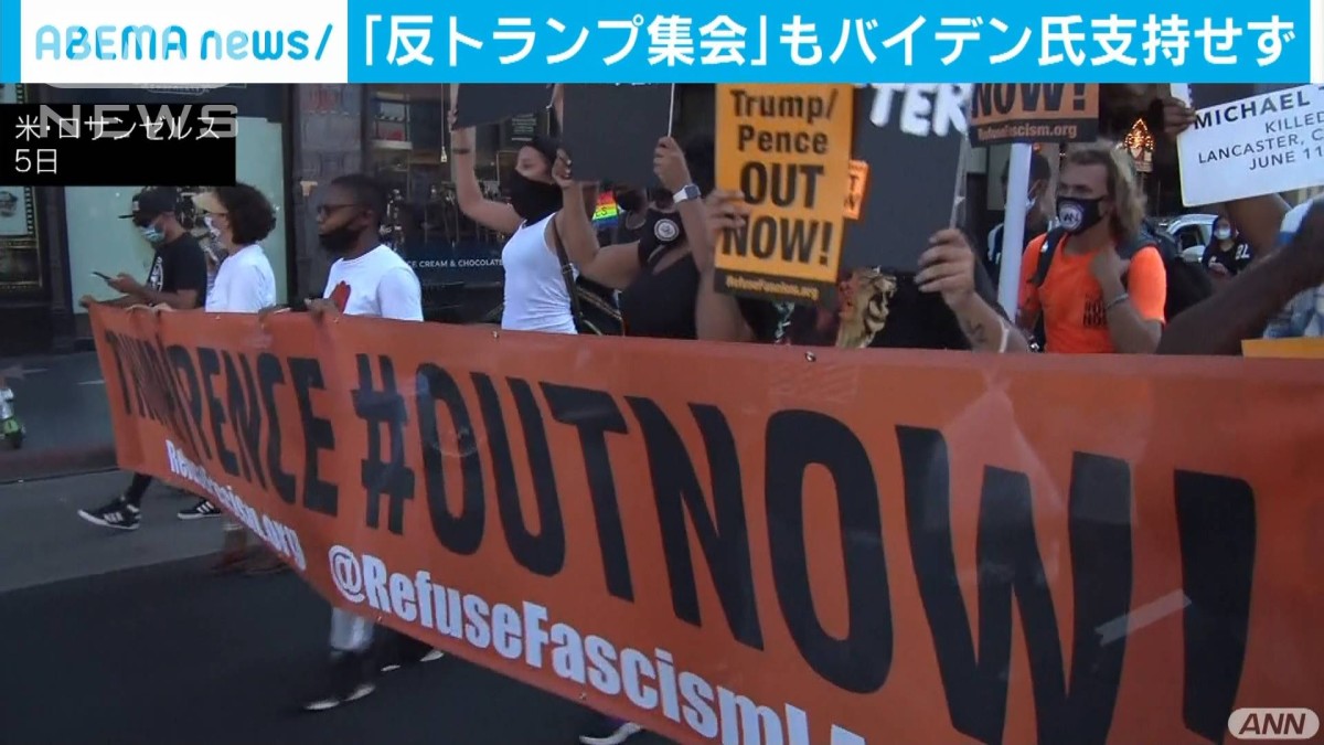 「反トランプ」集会はアメリカの28の都市で行われました。ロサンゼルスでの集会は新型コロナウイルスの影響で、これまでよりも小規模の数百人が参加しました。警察官による黒人殺害事件などを受け、人種差別に抗議する意味合いが強いものとなりました。
