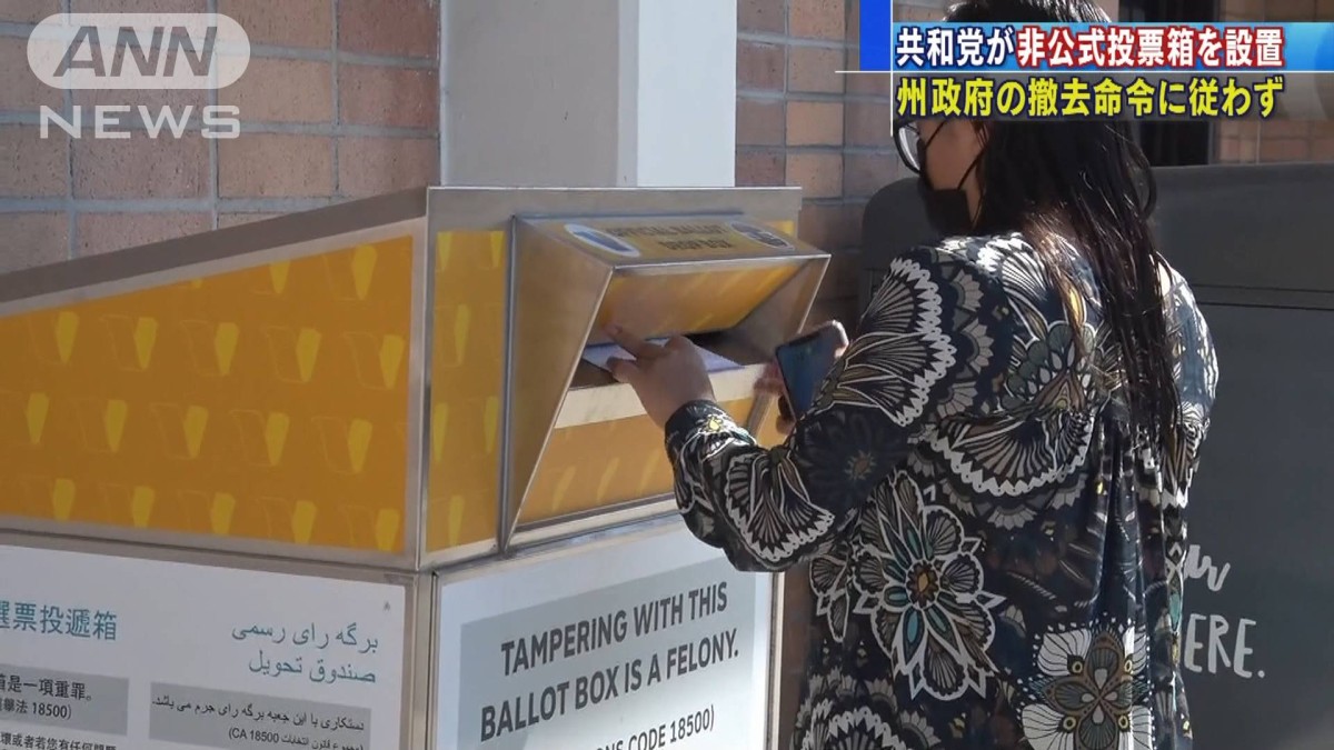 アメリカ・カリフォルニア州では大統領選挙の投票箱を共和党が独自に設置しました。民主党が主導する州政府は撤去するよう命じましたが、共和党側は応じていません。