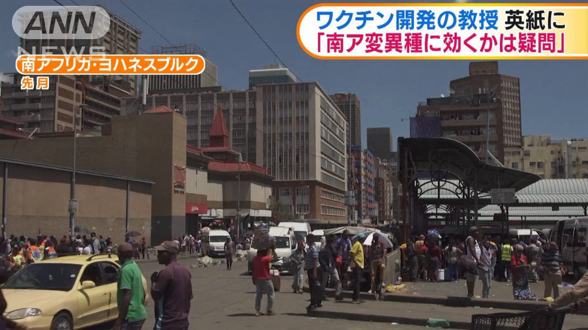 イギリスの専門家から南アフリカで見つかった変異種について、ワクチンが効かない恐れがあるという見方が出ています。
