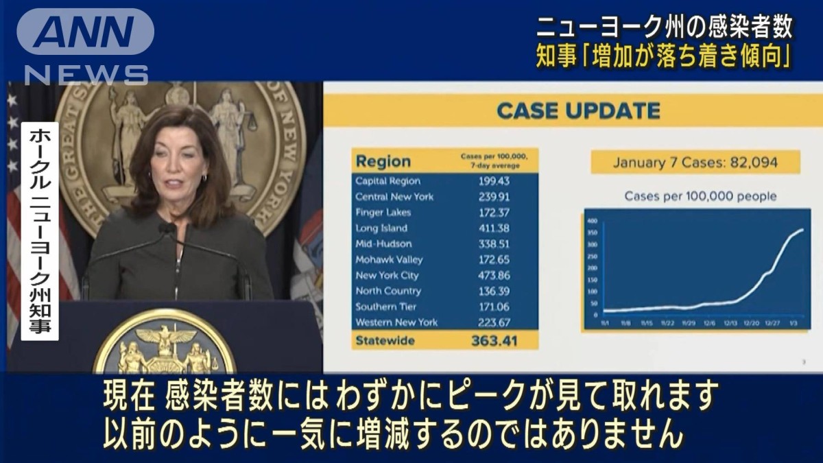 オミクロン株により、新型コロナの感染者数が急増していたアメリカ・ニューヨーク州では知事が「増加が落ち着きつつある」という見方を示しました。