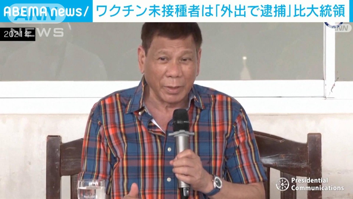 フィリピンのドゥテルテ大統領は、テレビ演説でワクチン未接種者に対する規制措置について、「拒否した場合は逮捕される」と発言しました。