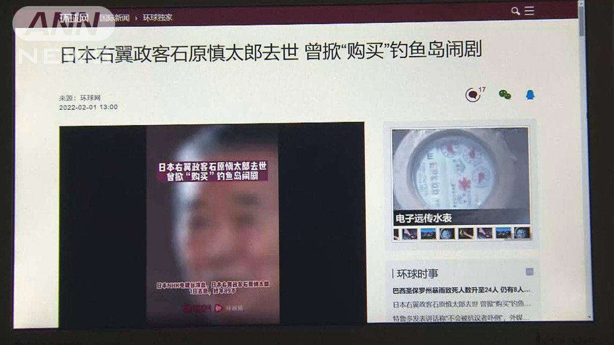 中国共産党系の「環球時報」は日本メディアの報道を受け、「日本の右翼政治家である石原慎太郎氏が89歳で死去」と速報しました。