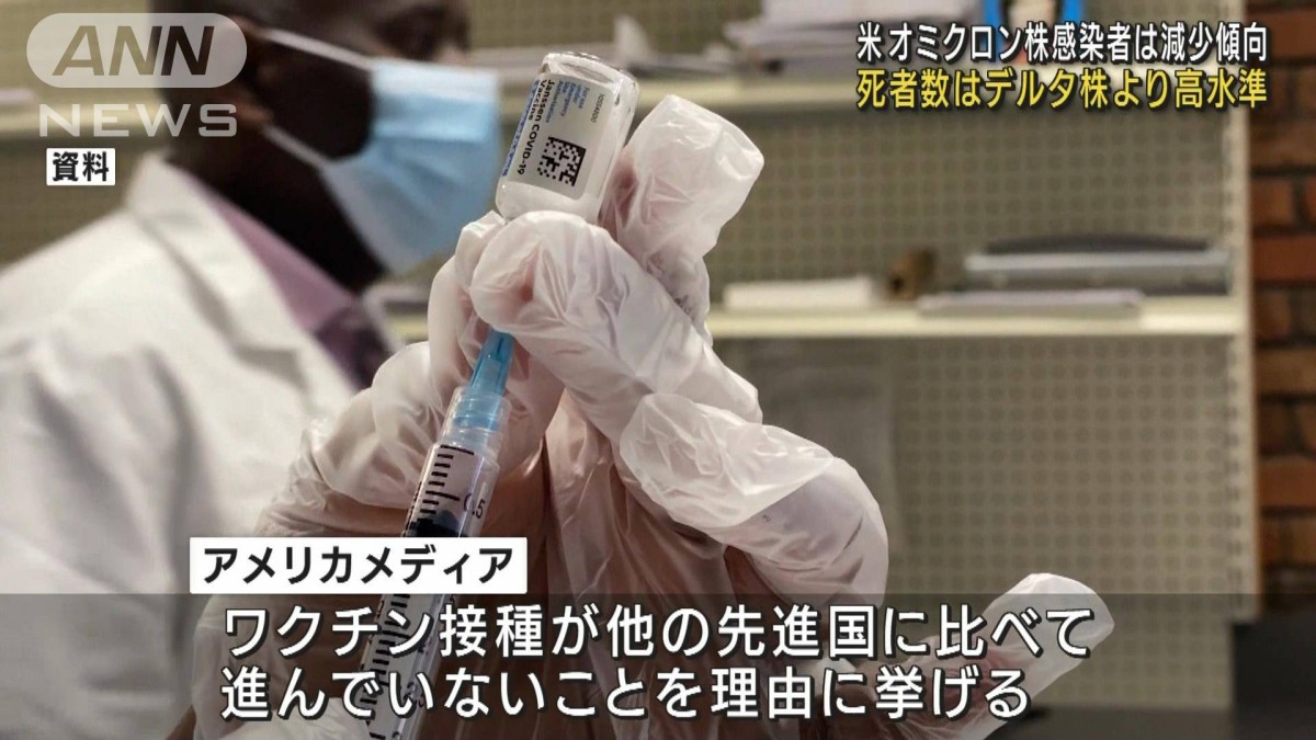 理由についてアメリカメディアは、ワクチンの接種が他の先進国に比べて進んでいないことを挙げていて、特に追加接種を受けていない65歳以上の割合がイギリスで9%なのに対し、アメリカでは43%に上るということです。